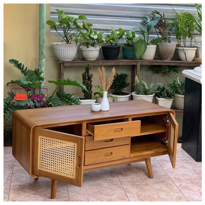 [Star]Meja Bufet tv bufet rotan kayu jati kualitas bagus modern minimalis ready semua ukuran
