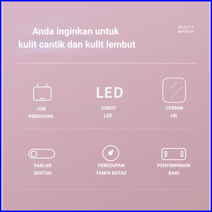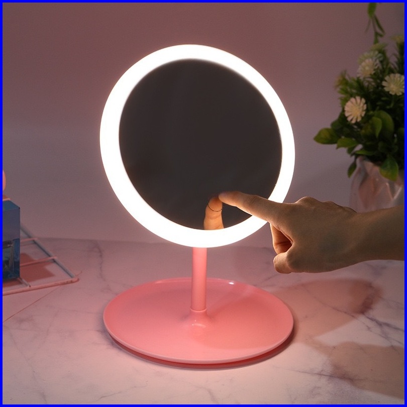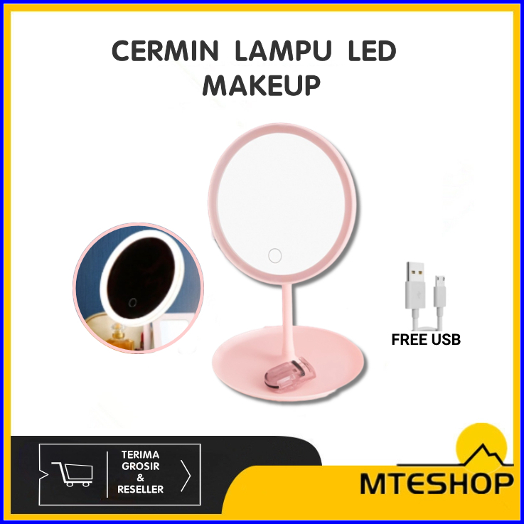 Mte Cermin Make Up Meja Dengan Lampu Led Touchscreen Rotasi 90 Derajat