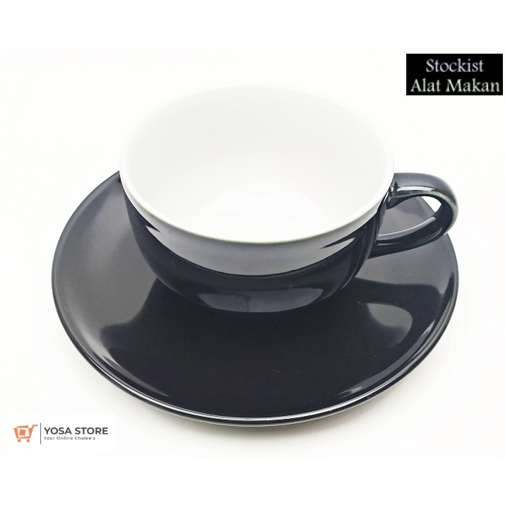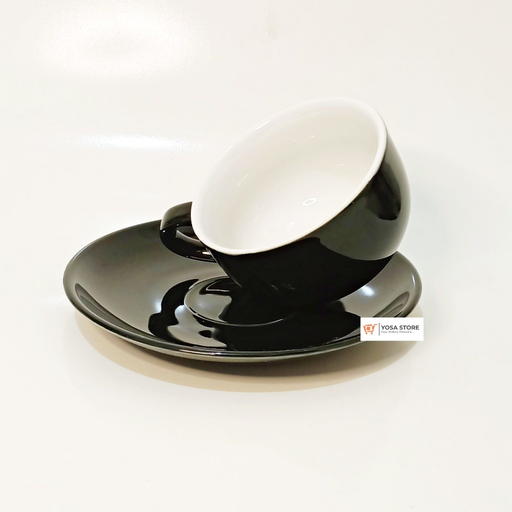 Cangkir Set Keramik Kopi Motif Latte Cafe KPC Hitam - Isi 2 Pc