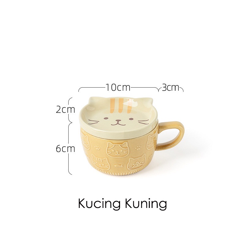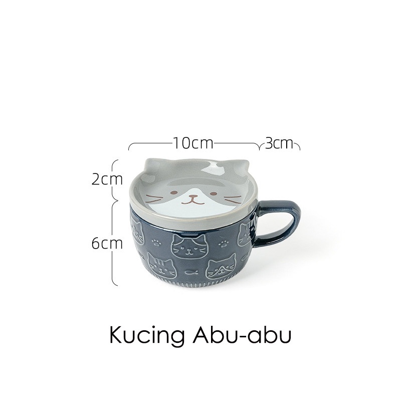 Kucing Dipotong Mug Set Ceramic Cup Cartoon Cat Cute Gelas Dengan Tutupan Mug Kopi Keramik Dengan Tutup Mug Sarapan