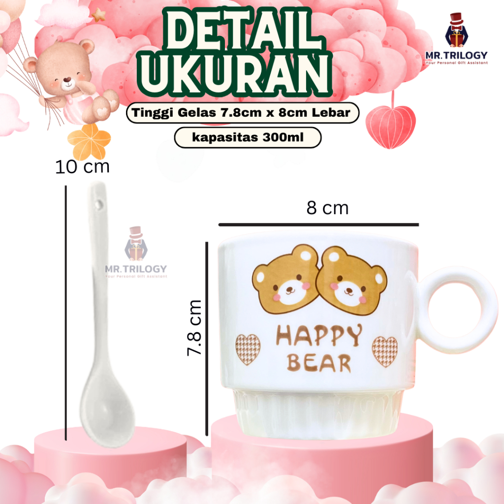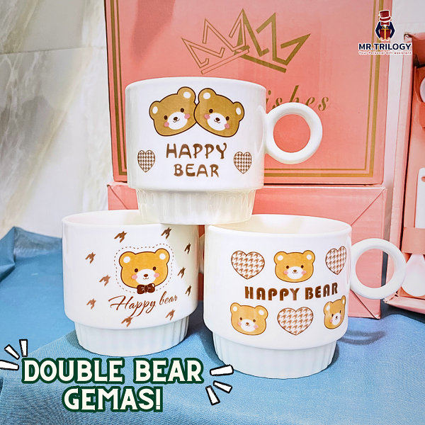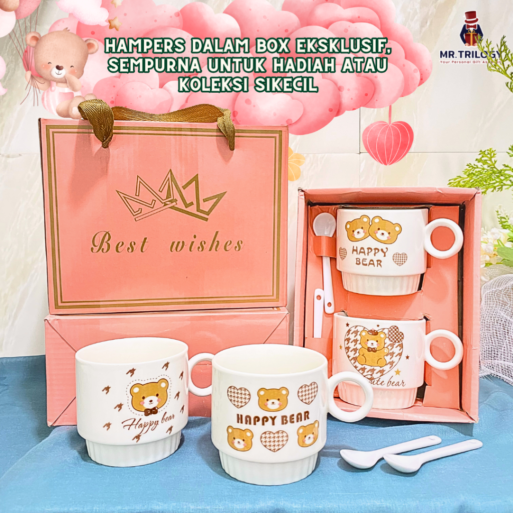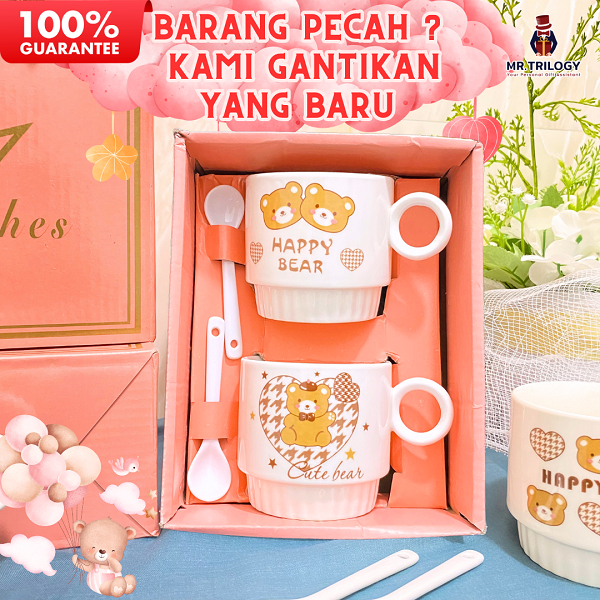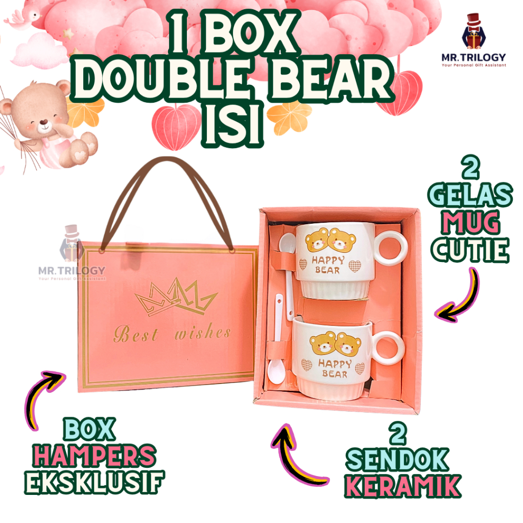 Kado Ulang Tahun Cewek SET Gelas Mug DOUBLE BEAR Hadiah Souvenir Hampers Kado Ultah Cangkir Keramik