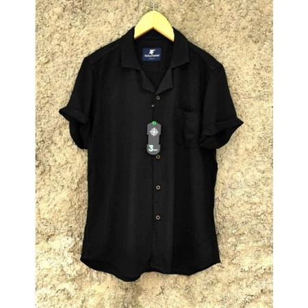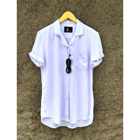 Basic Colour Shirt | Kemeja Pria Polos Retro V Neck Lengan Pendek Kasual Pria Wanita