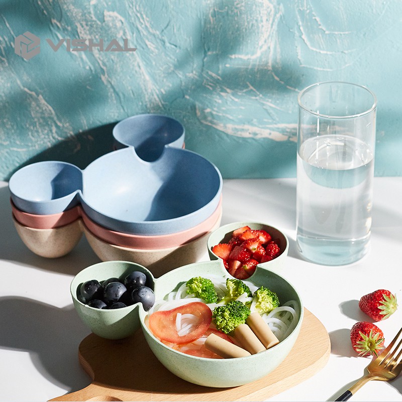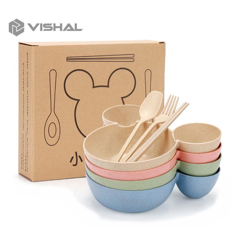 VISHAL Mangkok Set Peralatan Makan Anak 4 in1Bahan Jerami Gandum Children Tableware Piring VS-25