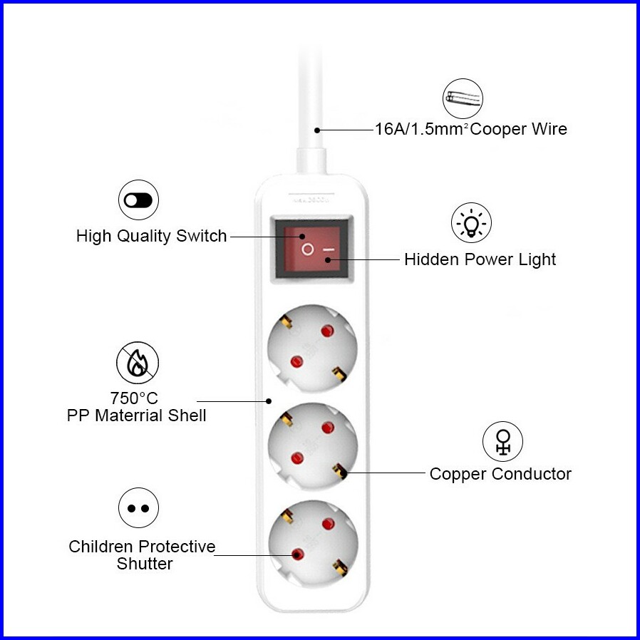 Mte Stop Kontak Kabel 3 Lubang 1.5 Meter 3m Colokan Listrik Stopkontak
