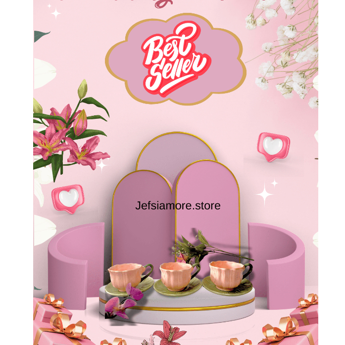 [ READY ] - Cangkir 3 Pasang Motif Bunga Lili Keramik / Kado Unik / Hampers Cantik / Gelas Lucu / Cangkir Cantik