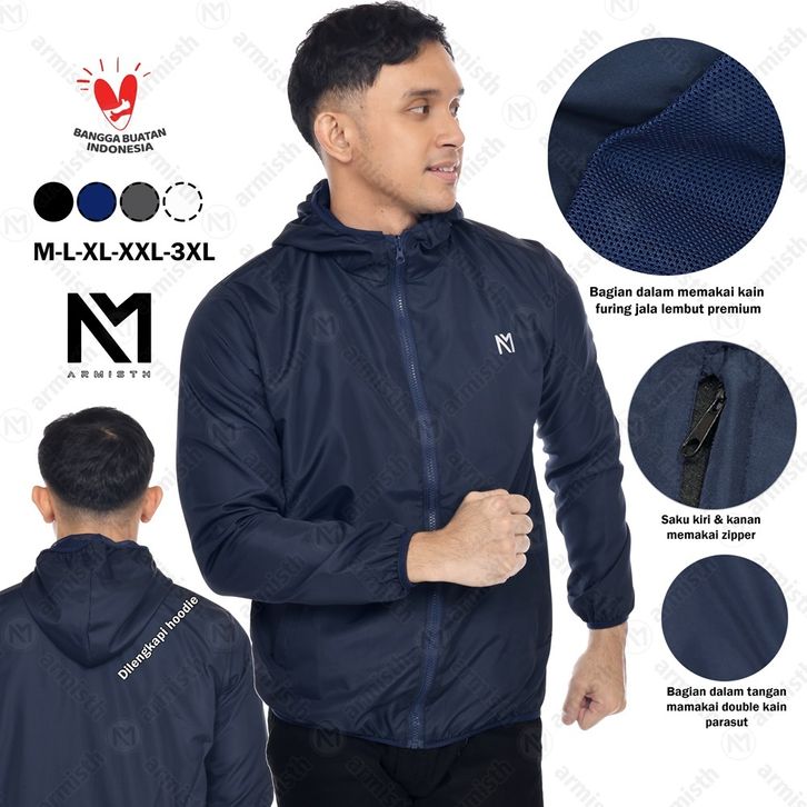 Armisth - Jaket Olahraga Parasut Premium Pria / Jacket Running Sauna / Atasan Lari Gym Sepeda