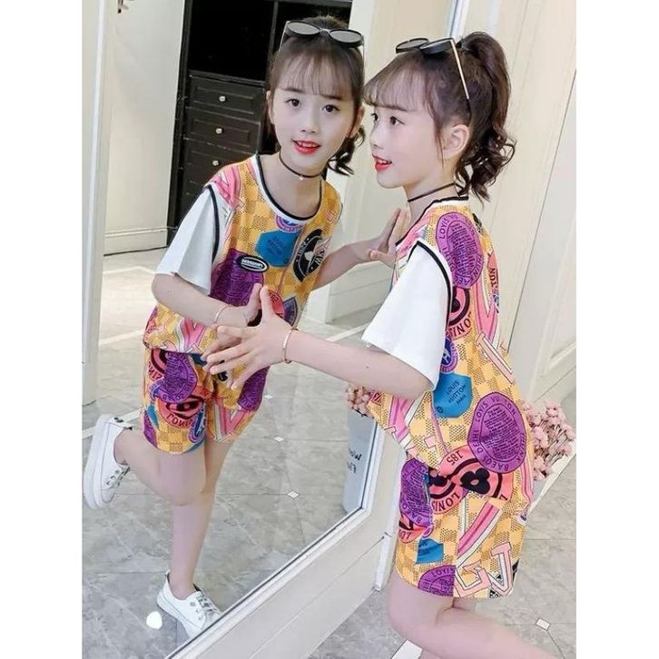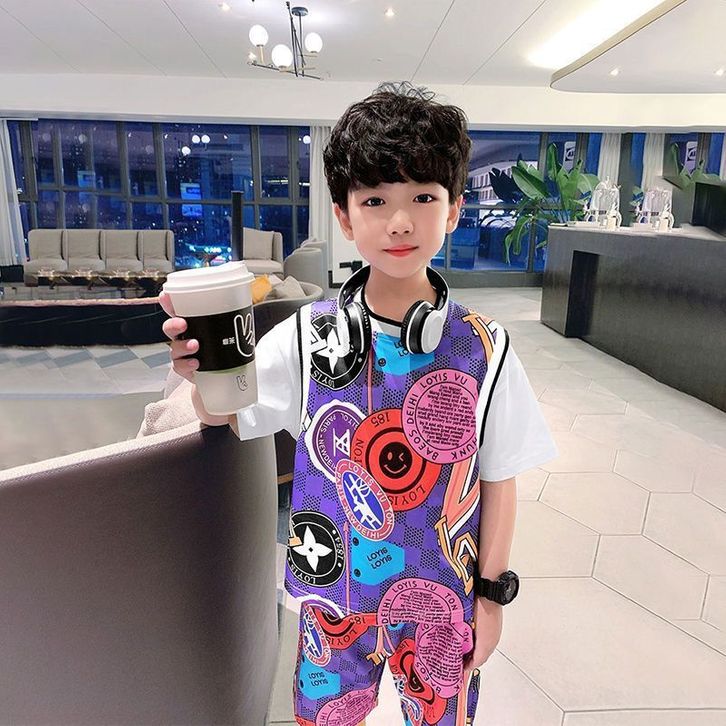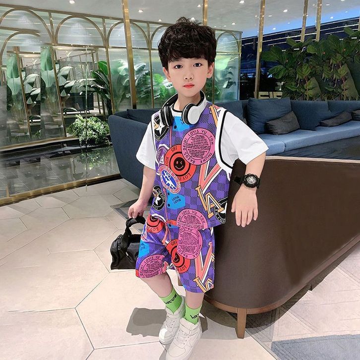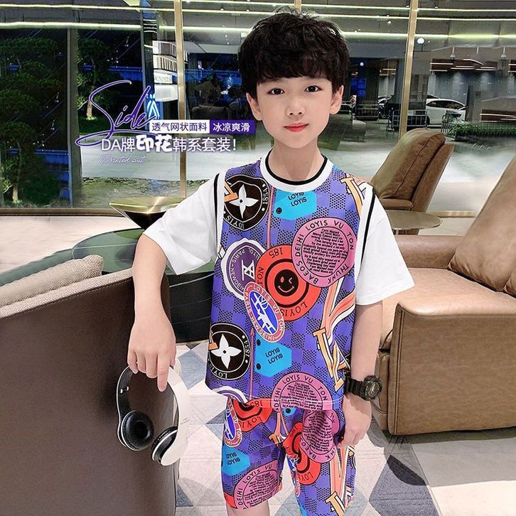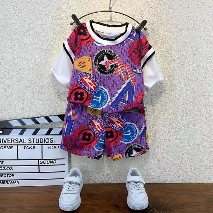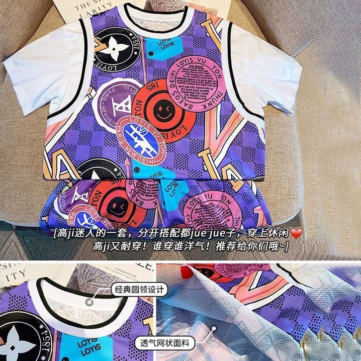 LJS233 Setelan anak laki laki lengan pendek purple / baju anak tanggung / baju anak cowok