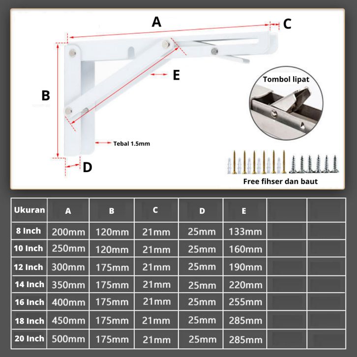 furniture Engsel Meja Lipat Dinding 8',10',12',14',16',18',20' Siku Lipat Meja Dinding Siku Meja Lipat bracket meja