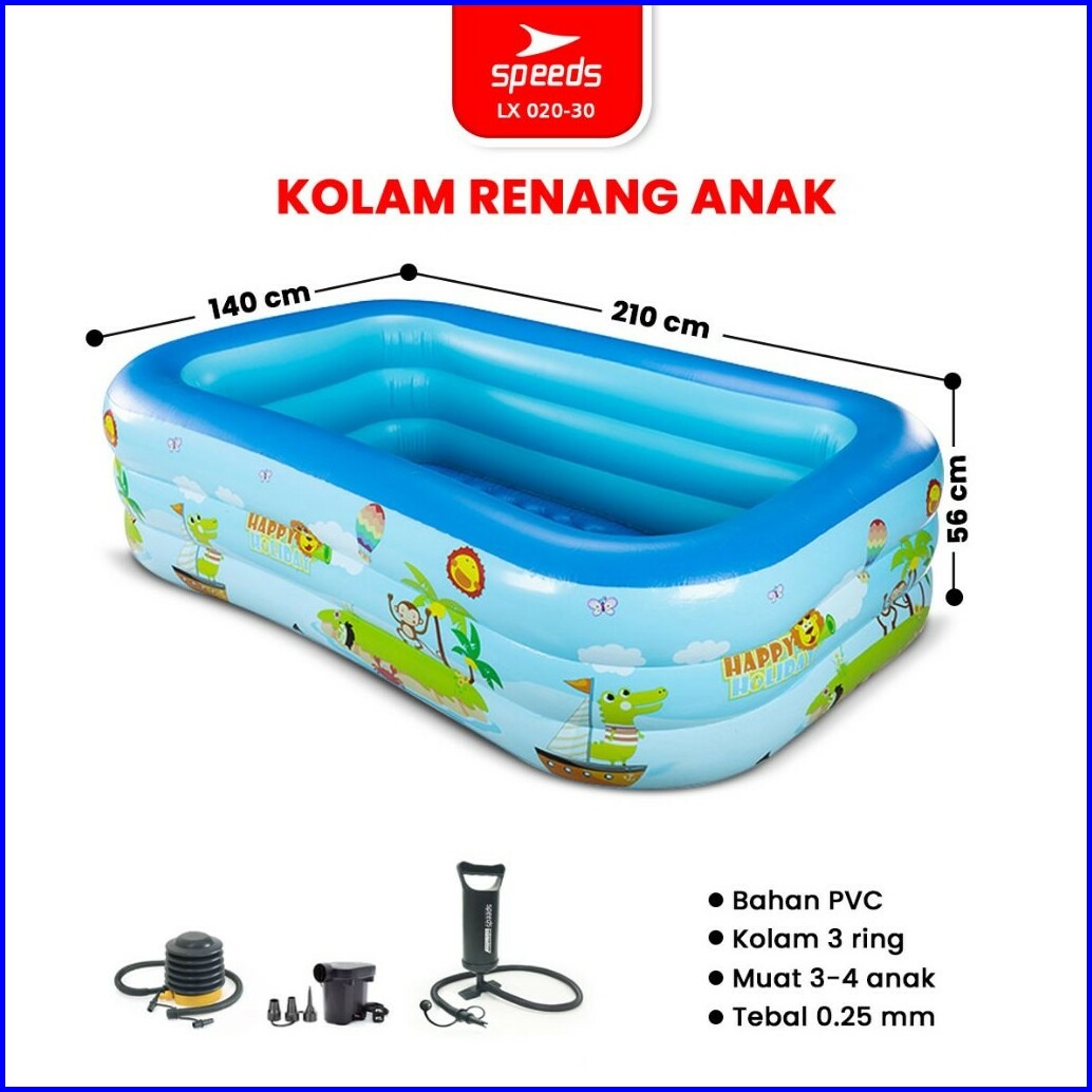 Speeds Kolam Renang Anak 210x140x56cm 3 Ring Layer Motif Kolam Renang Bayi Portable Bahan Kuat Inflatable Swimming Pool