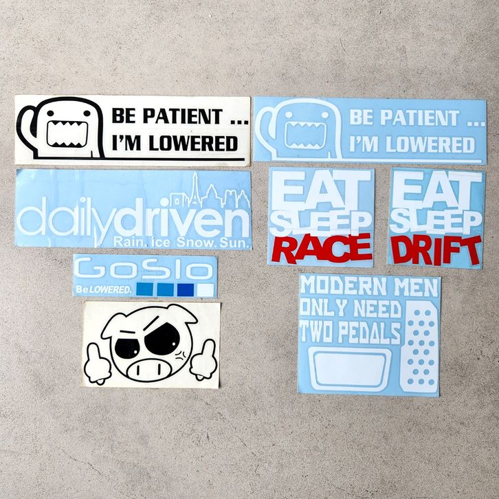 ART OF ATTACK PTH, SHOCKER PUTIH, LIMITED EDITION, ART OF ATTACK HTM, SHOCKER BENDERA, BE PATIENT PUTIH, SUPER ENGINE, BE PATIENT HITAM, EAT SLEEP DRIFT, DAILY DRIVEN, PIG FLIP OFF, MONSTER 4PCS HITAM, I LOVE JDM, MONSTER 2PCS HITAM, EAT SLEEP RACE, SHOCKER HITAM, PARKING JAPAN, MONSTER LOGO ONLY, MONSTER LOGO TULISAN, GO SLO, MODERN MAN, JDM RETRO, SAFETY DRIVING JDM, SET MONSTER 1 HITAM, DRIFT JAPAN, JAF, AKINA SPEED STAR
