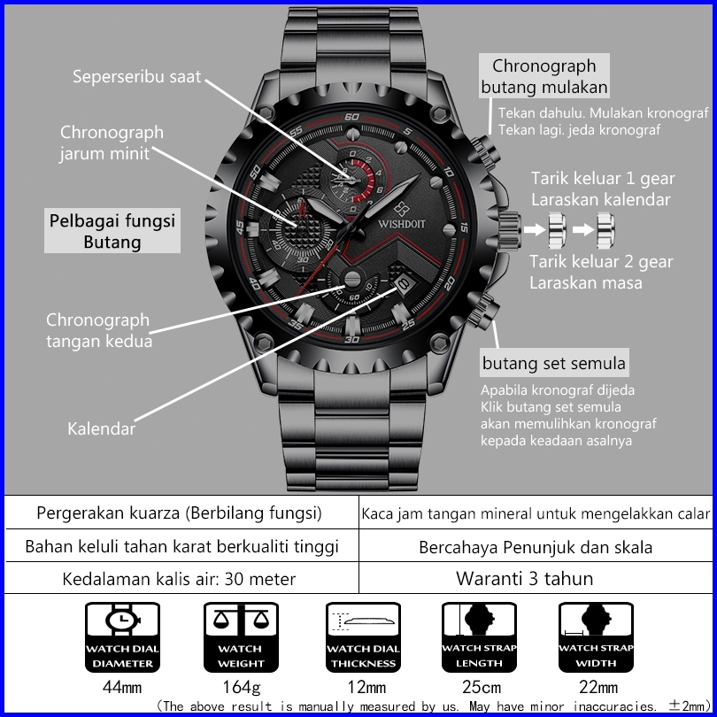 Wishdoit Jam Tangan Pria Anti Air Asli 2025 Terbaru Mewah Baja Tahan Karat Bisnis Kalender Bercahaya Mewah Jam Pria Set