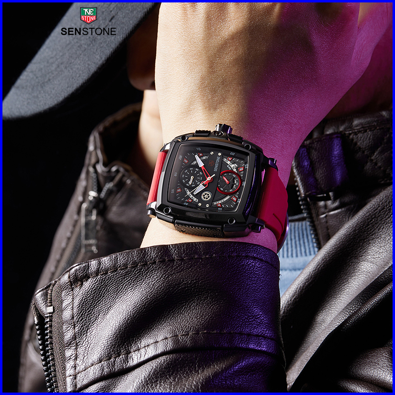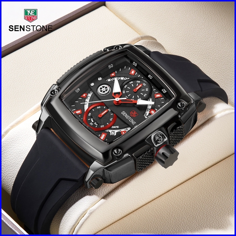 Senstone Jam Tangan Priaterbaru Asli Anti Air Kalender Bercahaya Mewah Hitam Mewah Baja Tahan Karat Jam Pria Kotak Hadia