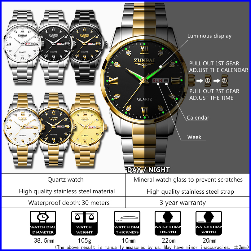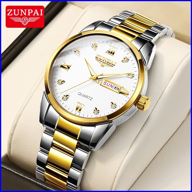 Zunpai Jam Tangan Pria Asli Anti Air Mewah Analog Keren Bisnis Kuarsa Asli Baja Tahan Karat Produk Baru Jam Pria Set Had