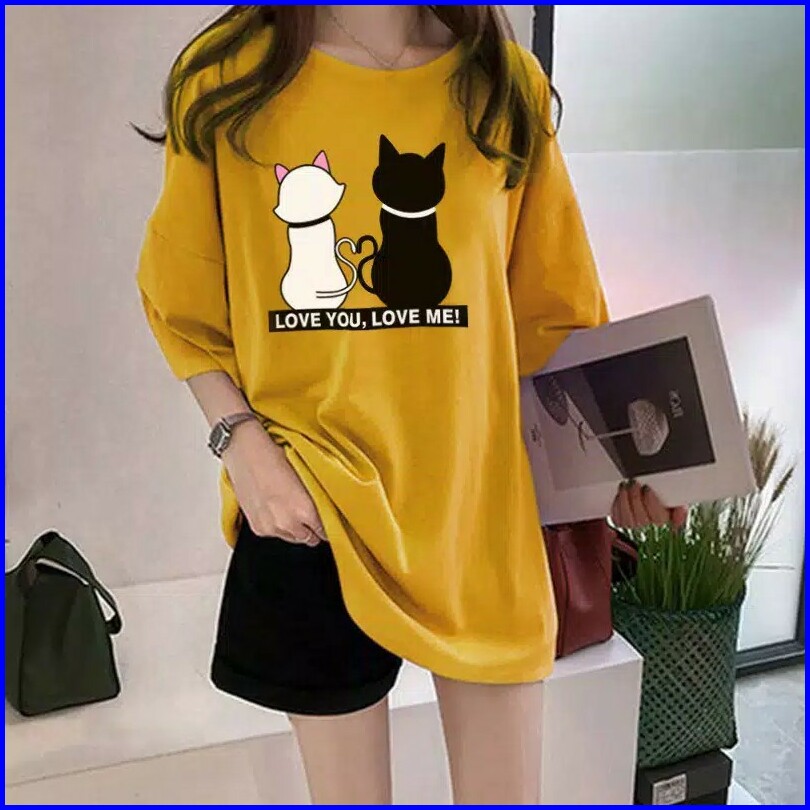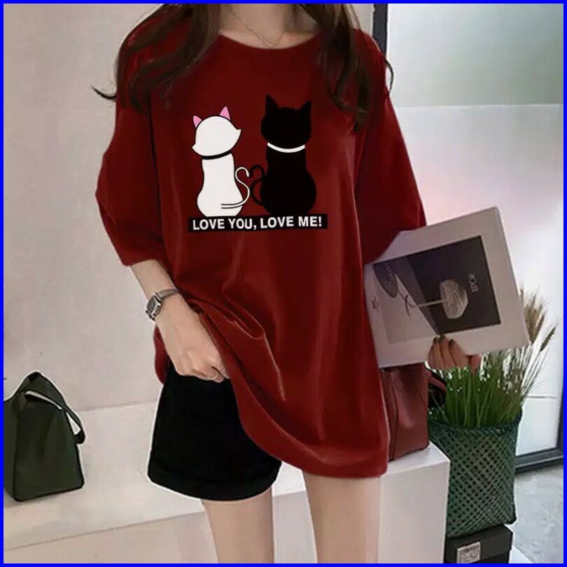 Silvia Kaos Atasan Wanita Jumbo Cat Loveyou Fit To Xxl