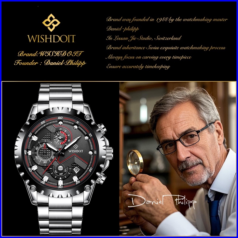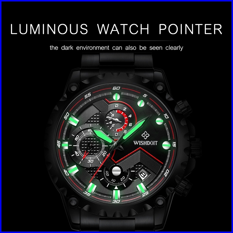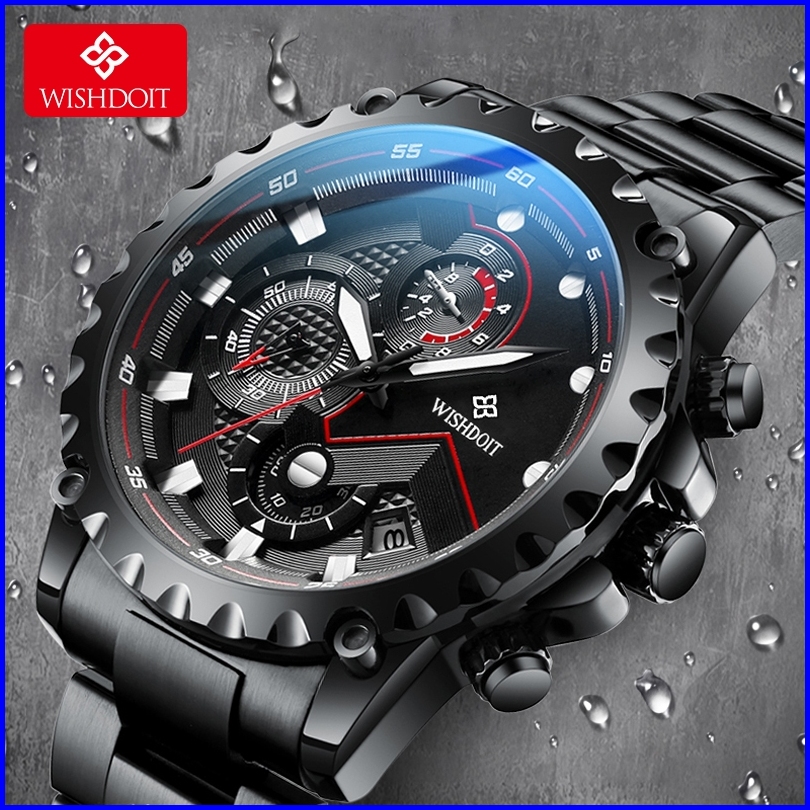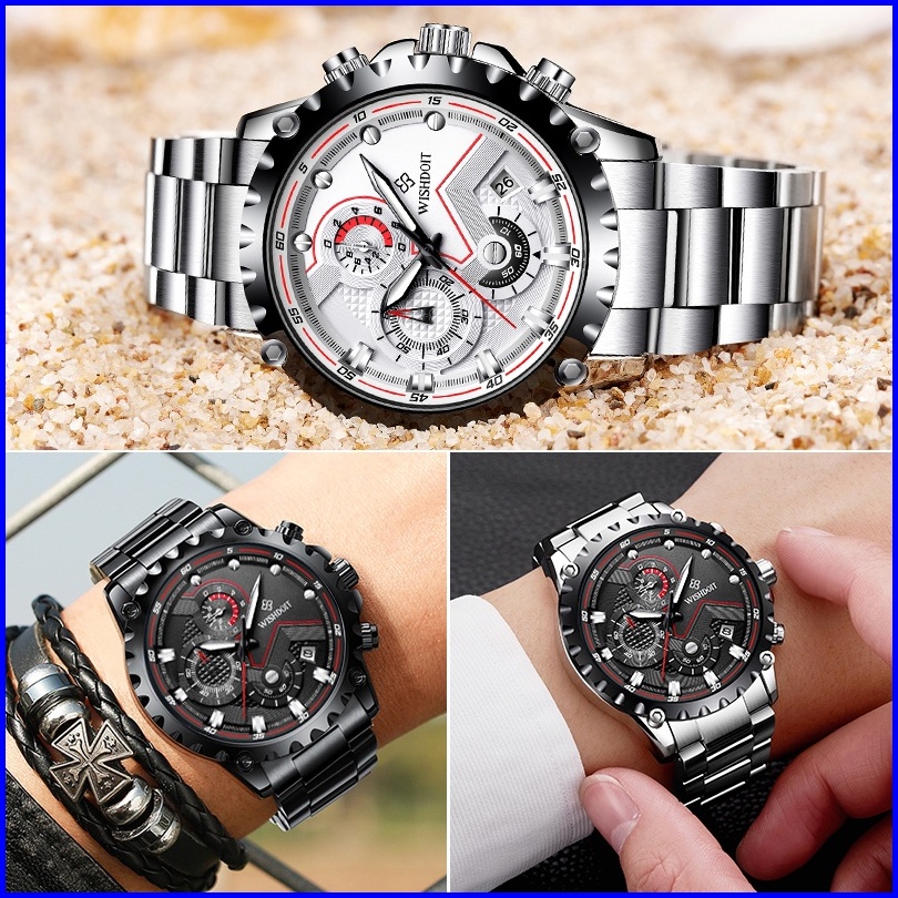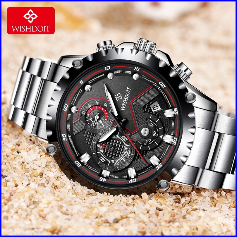 Wishdoit Jam Tangan Pria Anti Air Asli Baja Tahan Karat Kalender Bercahaya Multifungsi Chronograph Paket Hadiah Watch Me