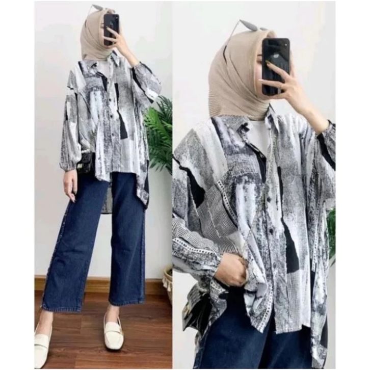 Kemeja Wanita Oversize Rayon Premium Adem Lengan Panjang Kemeja Cewek Kekinian Korean Style Atasan Casual Terbaru