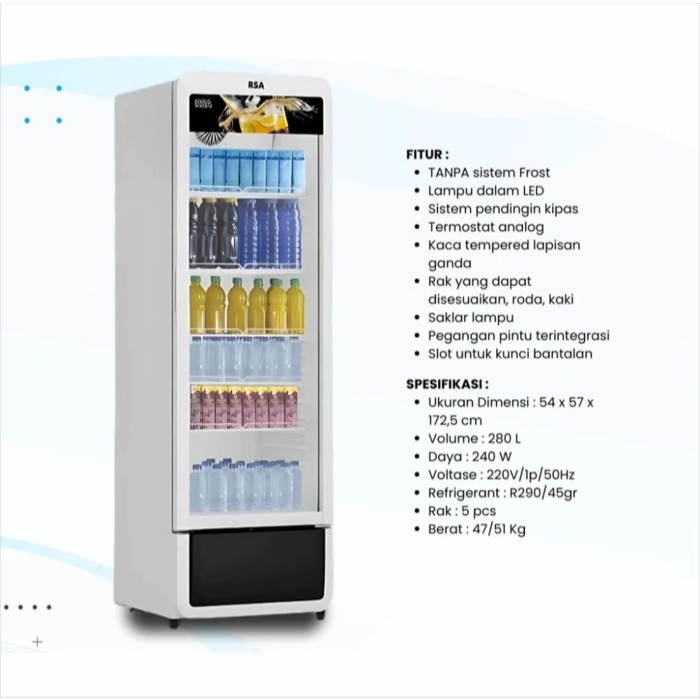 RSA SHOWCASE 1 PINTU 240L RUBY 240 NO FROST SYSTEM 240 LITER / RSA SHOWCASE 1 PINTU 200L RUBY 200 NO FROST SYSTEM 200