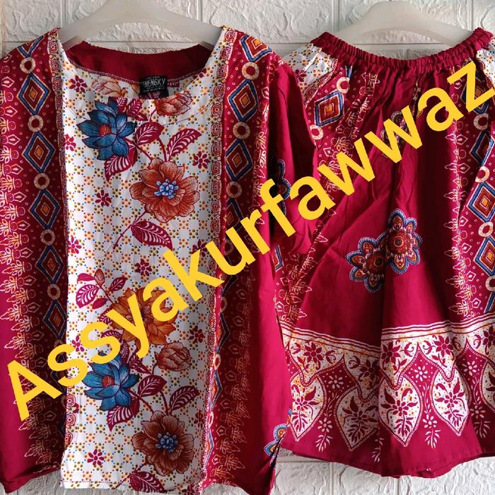 Murah SETELAN CELANA KULOT HENGKY MOTIF BUNGA TOMB@#viral#cantik - merah