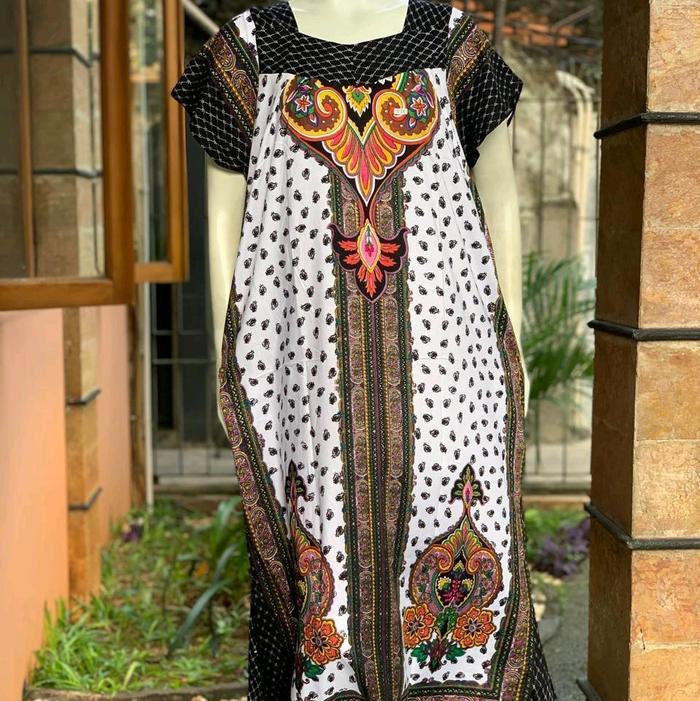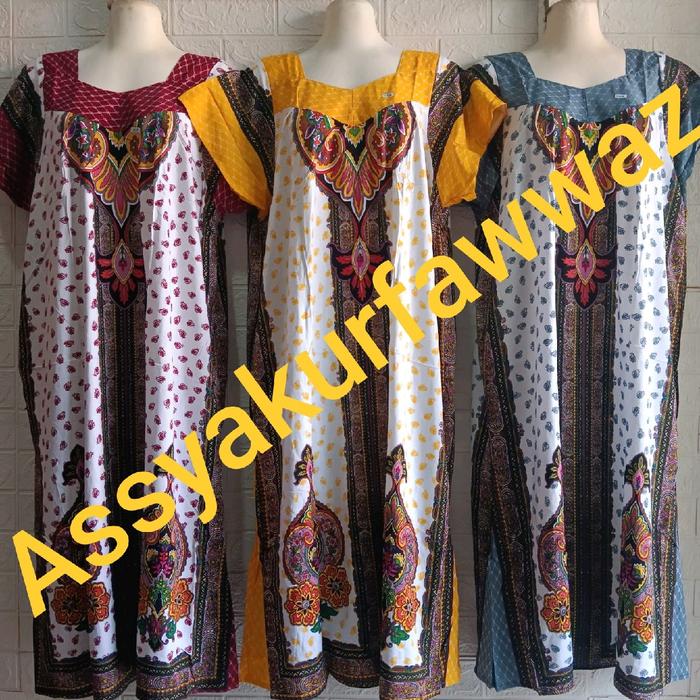 Terlaris DASTER BATIK ELOK MODEL SIKAK LD 120 MOTIF BUNGA PUTIH - A. Kuning