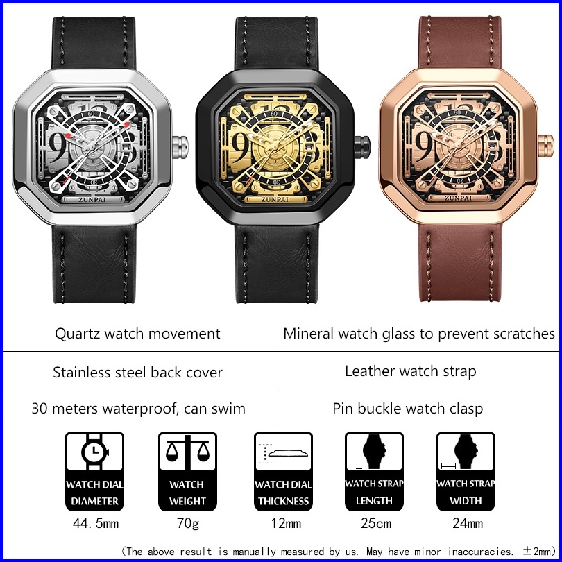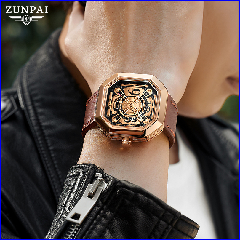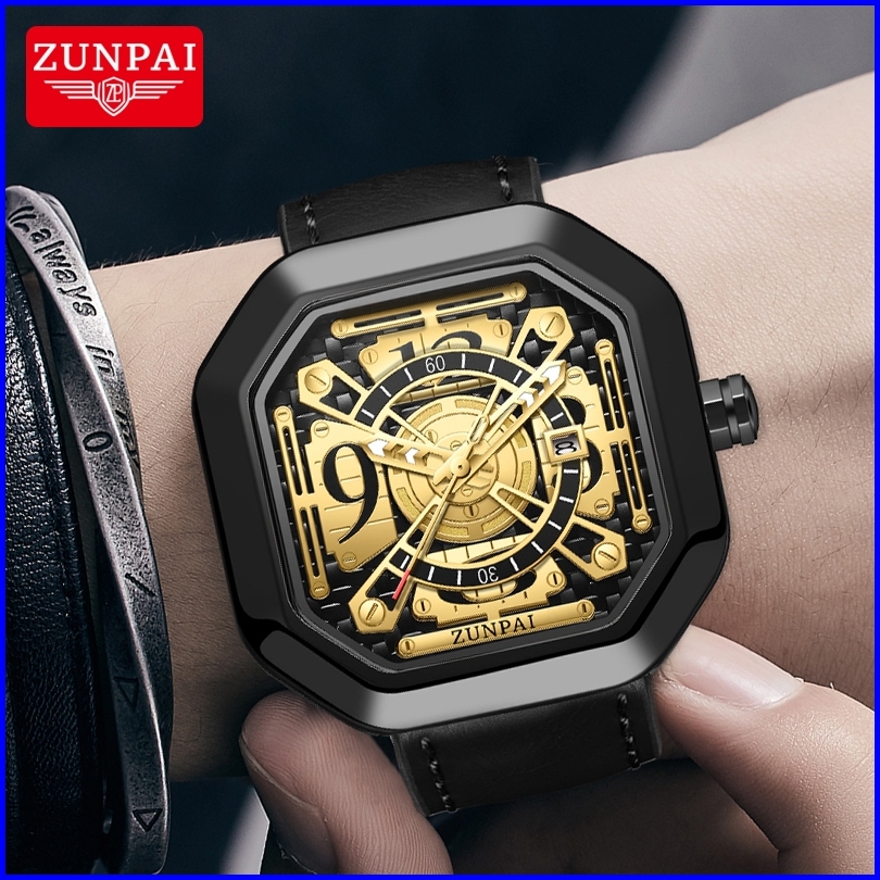 Zunpai Jam Tangan Pria Asli Anti Air Keren Kulit Asli Jam Pria Olahraga Tahan Air Fashion Tali Kulit Asli Jam Tangan Kua