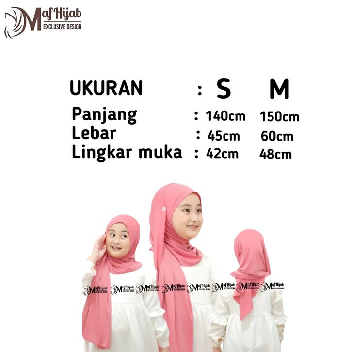 Pashmina Kancing - Jilbab Hijab Instan Pashmina Instan Anak Sakura Jersey 4-10Thn