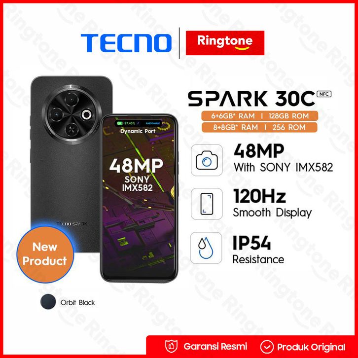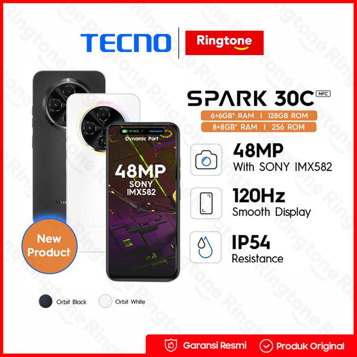 TECNO SPARK 30C 6/128 + 8/256 GARANSI RESMI 1 TAHUN TECNO