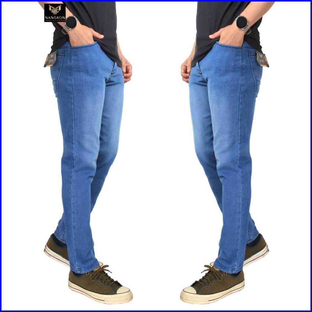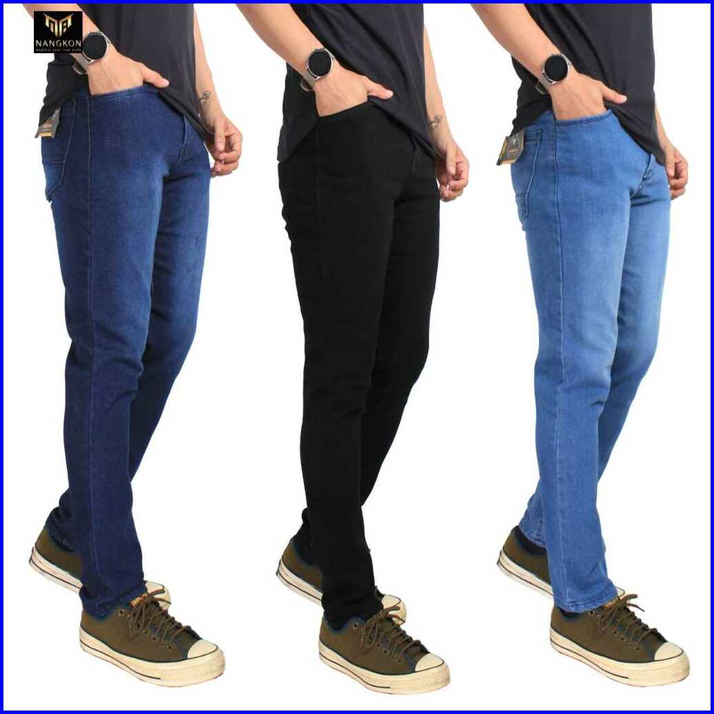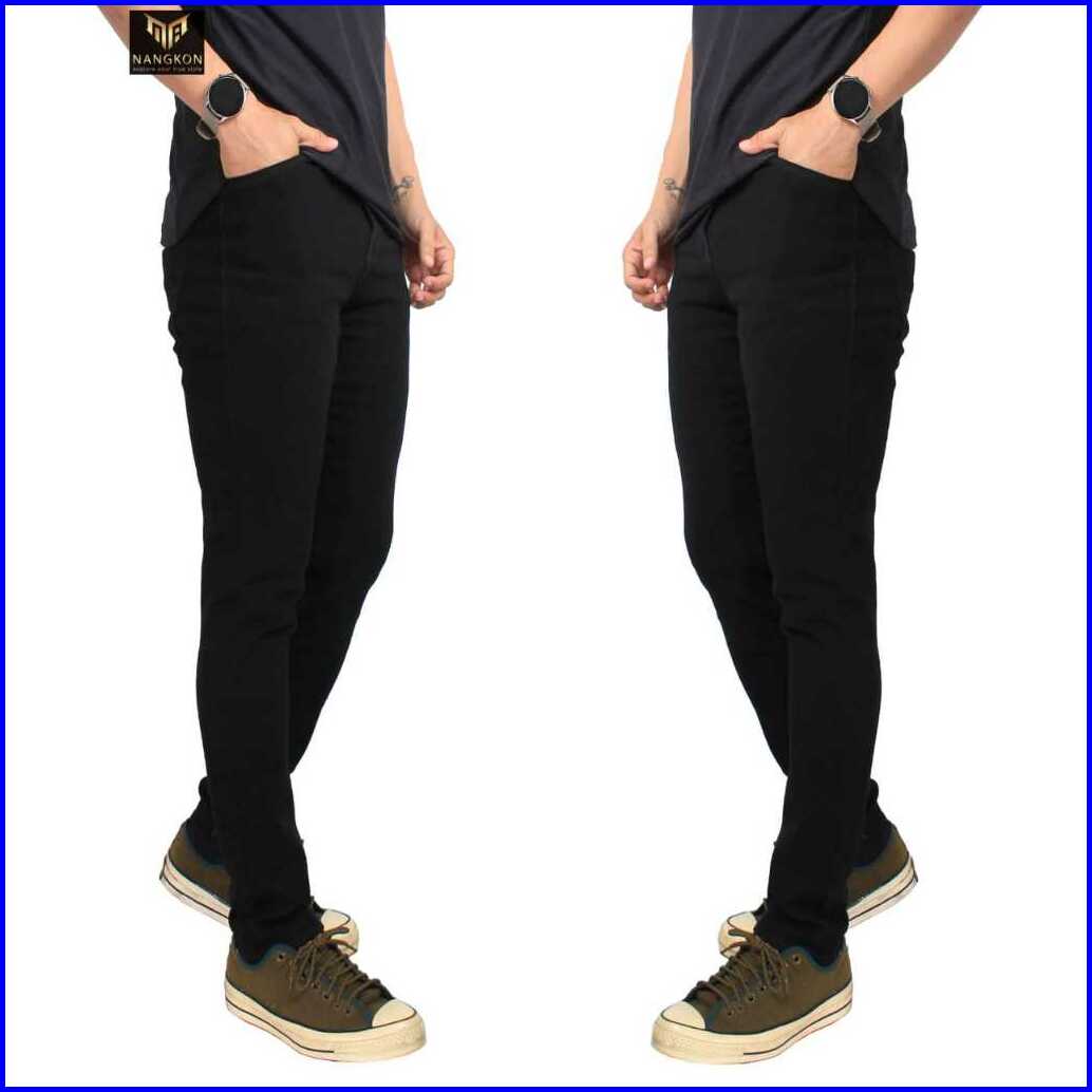 Nangkon - Celana Jeans Pria Bahan Melar Pensil Cowok Hitam Panjang Pria Slim Fit Nangkon Premium