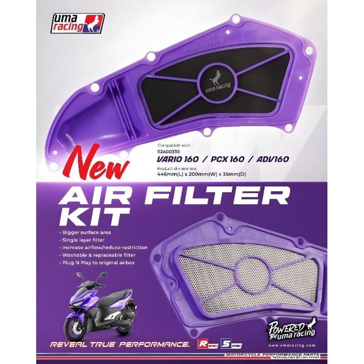 FILTER UDARA UMA RACING VARIO 160 PCX 160 ADV 160 STYLO 160 ORIGINAL UMA RACING MALAYSIA