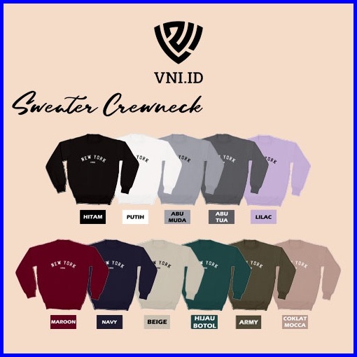 Vni.id Basic Sweater Polos New York 199x Pria Wanita Size M-xxl