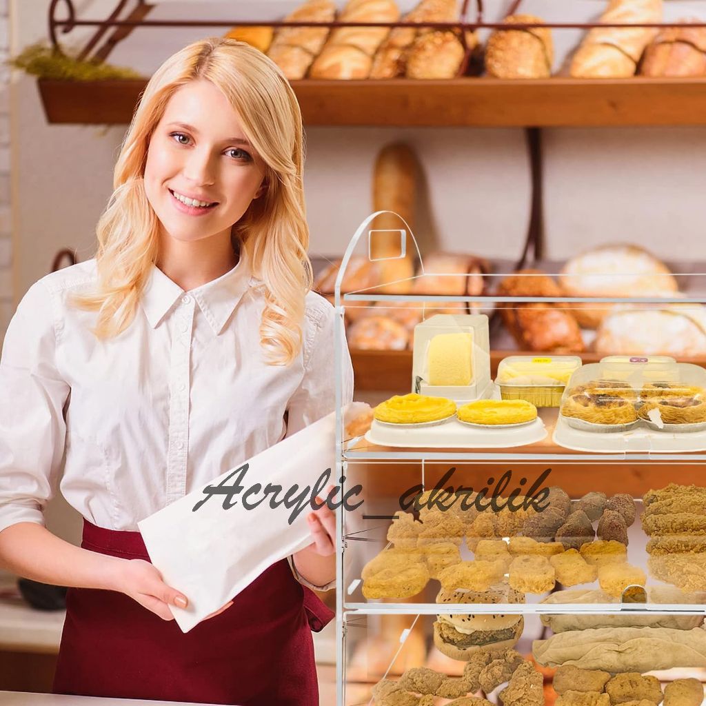 Etalase Kue Akrilik S3 Dengan Gagang Dan Desain Transparent