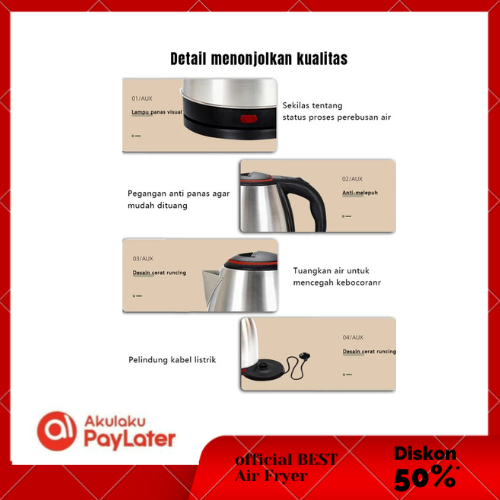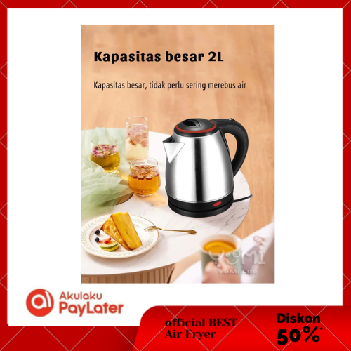 Teko Listrik Pemanas Air Mati Sendiri Steel 2.0L Besar Otomatis Electric Kettle