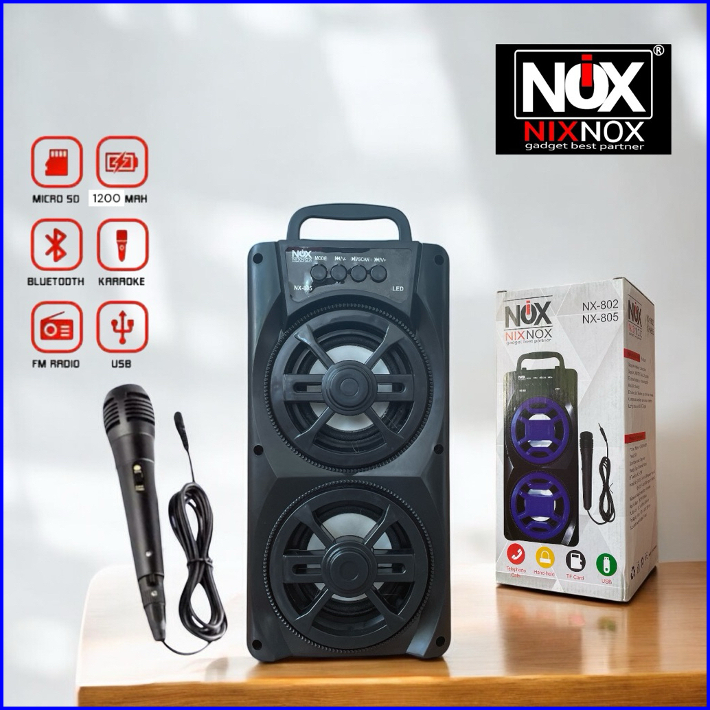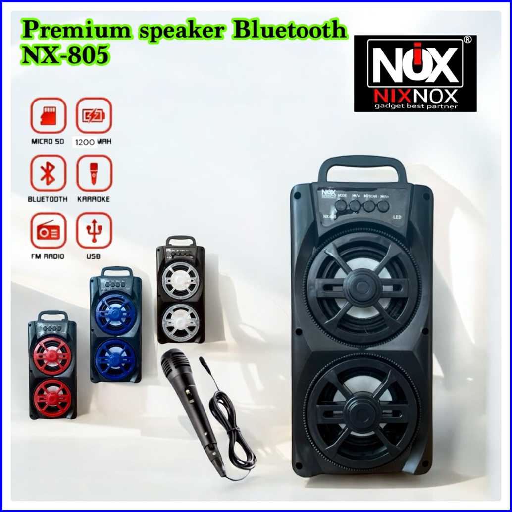 Speaker Bluetooth Karaoke Nixnox Nx-805 Free Mic Big Bass Speaker Portabel Termurah