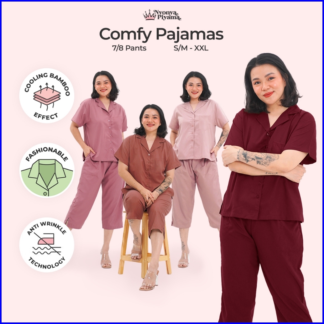 Best Seller Nyonya Piyama Poly Bamboo Set Celana Pendek 7 8 Polos Comfy Vol 1