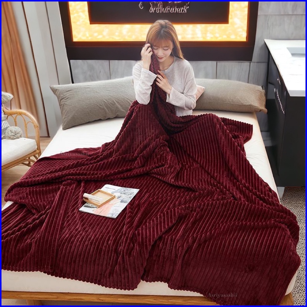 Selimut Dewasa Bulu Tebal 180x200 Motif Polos Embos Terlaris Termurah Asriyasashii Berkualitas