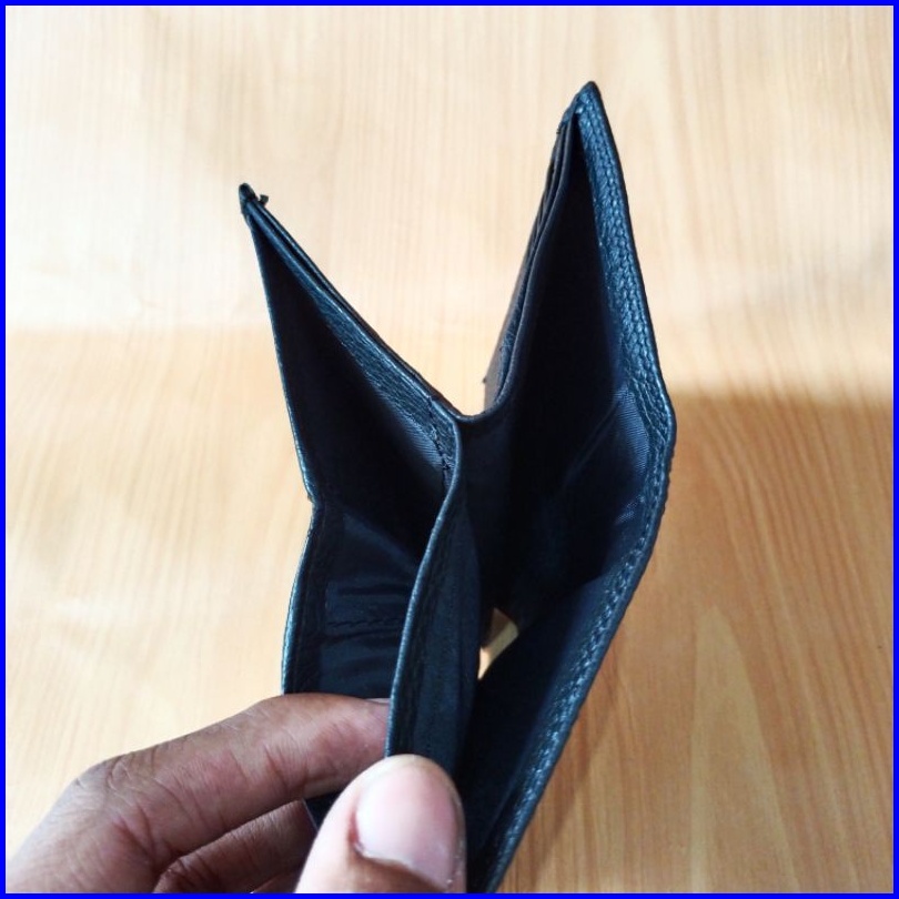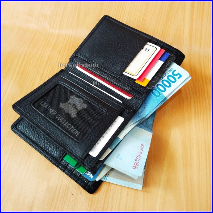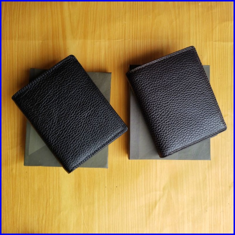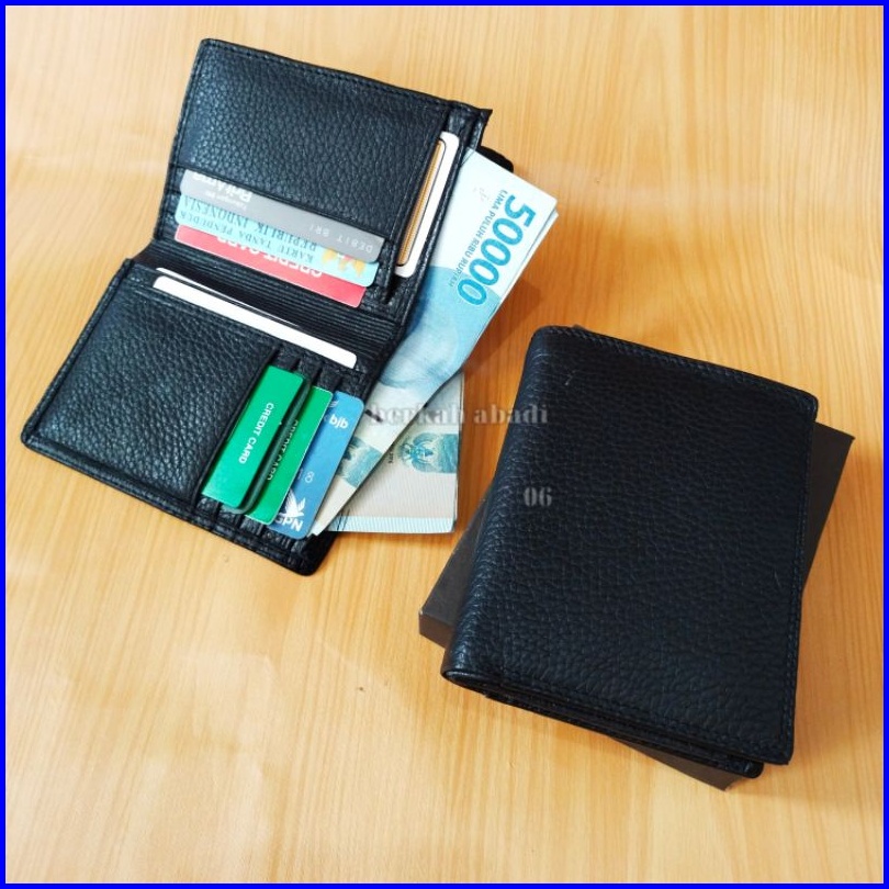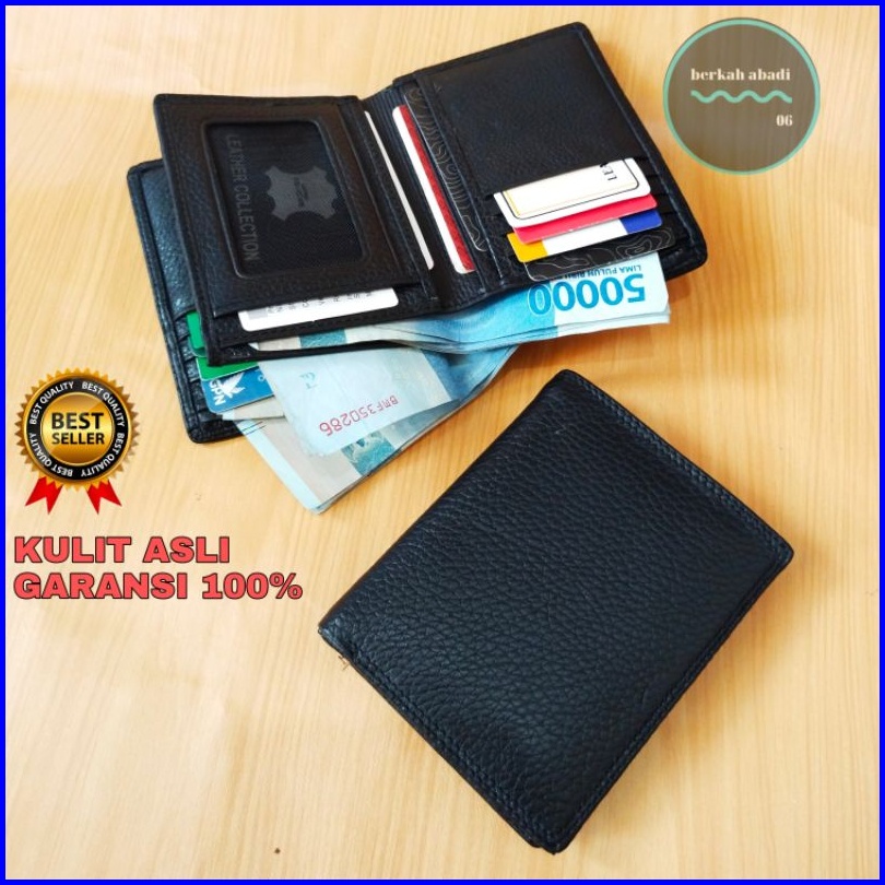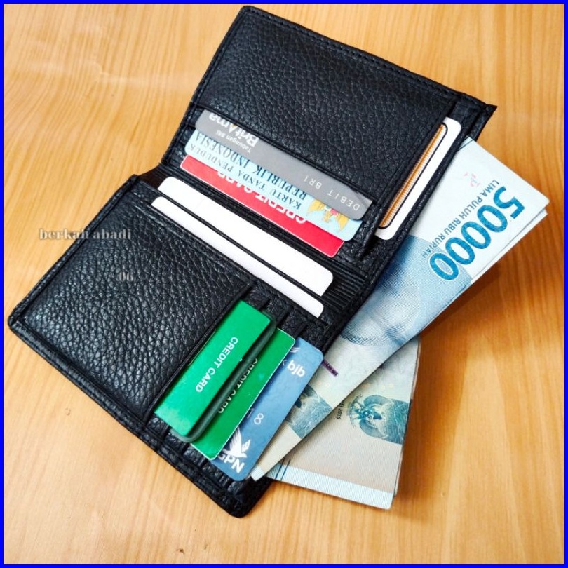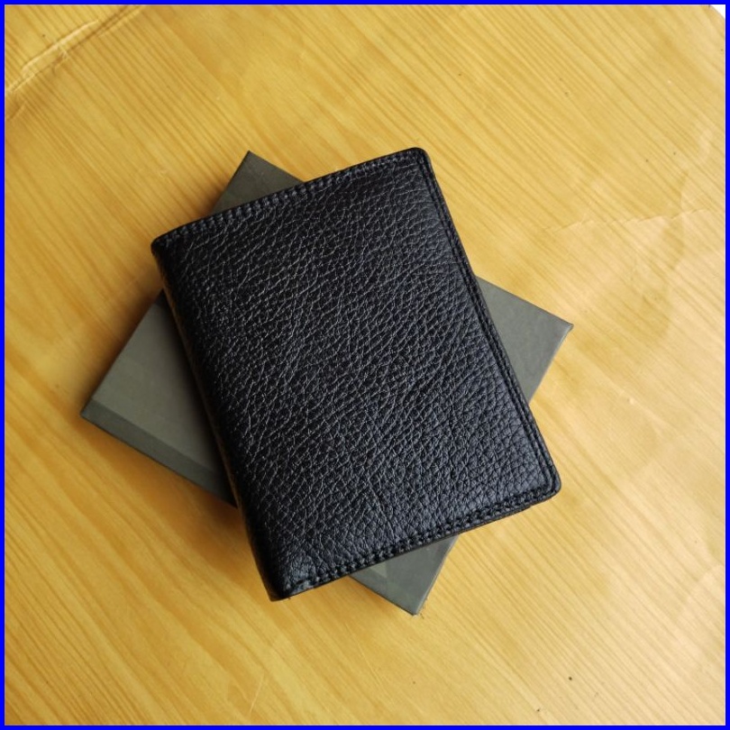 Dompet Pria Kulit Sapi Asli Lipat Diri Lipat Buku Full Black Tekstur Jeruk Halus