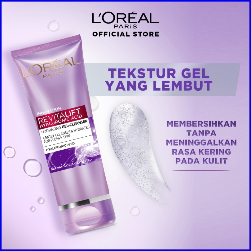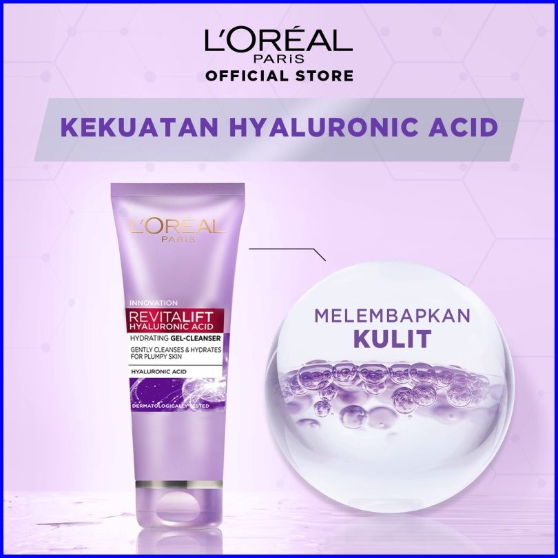 L Oreal Paris Revitalift Hyaluronic Acid Hydrating Gel Cleanser Skin Care - 100ml 100ml Kulit Kering Garis Halus Kerutan