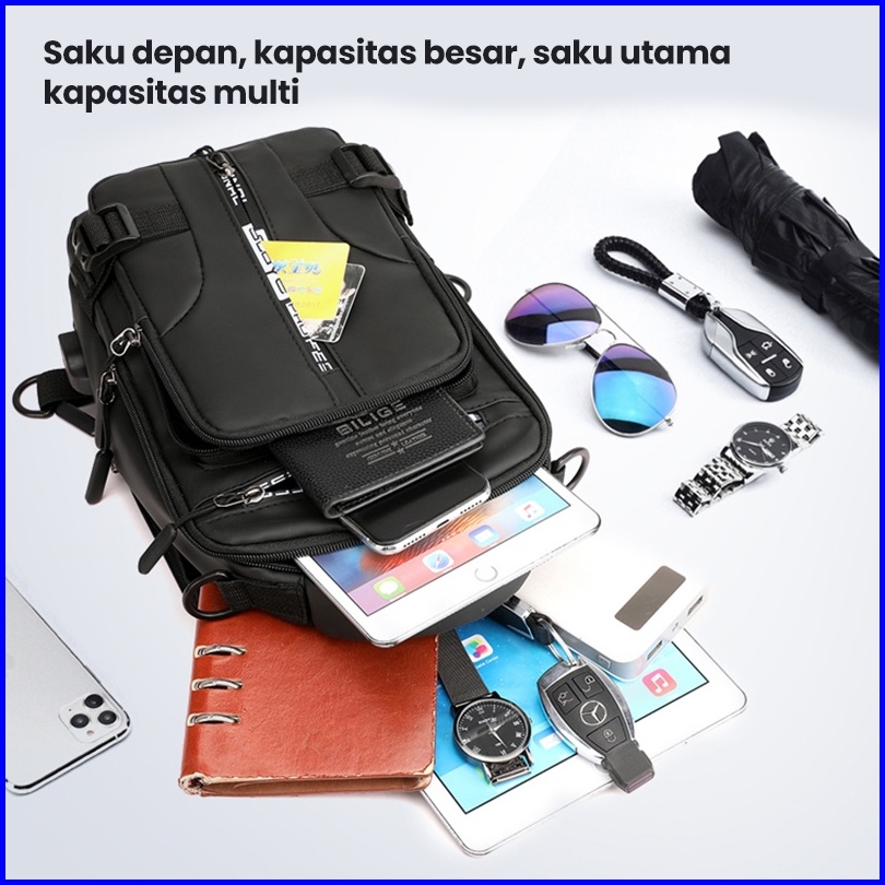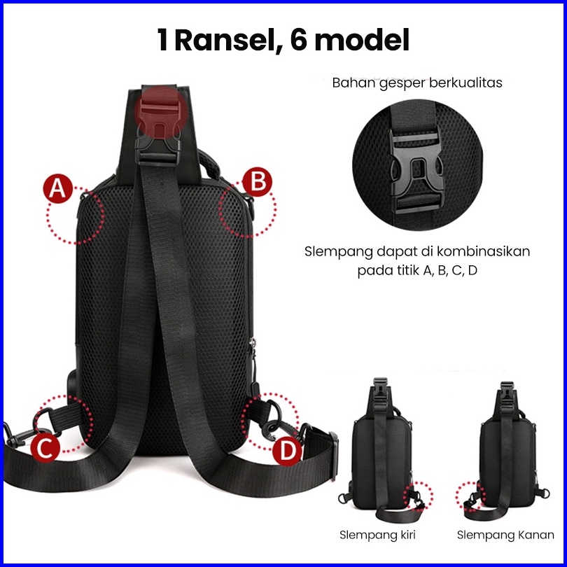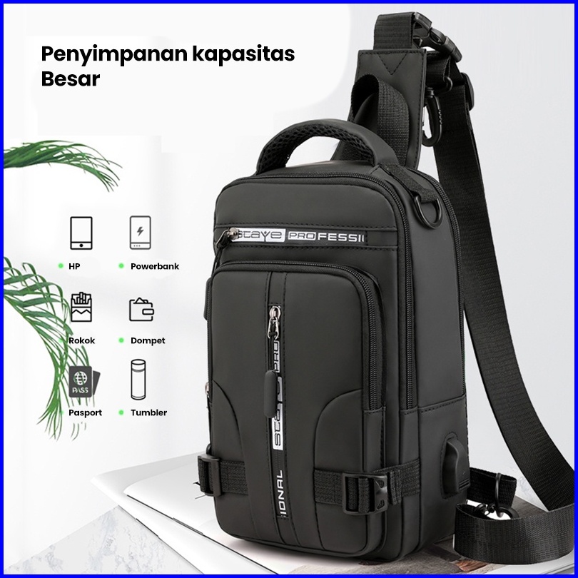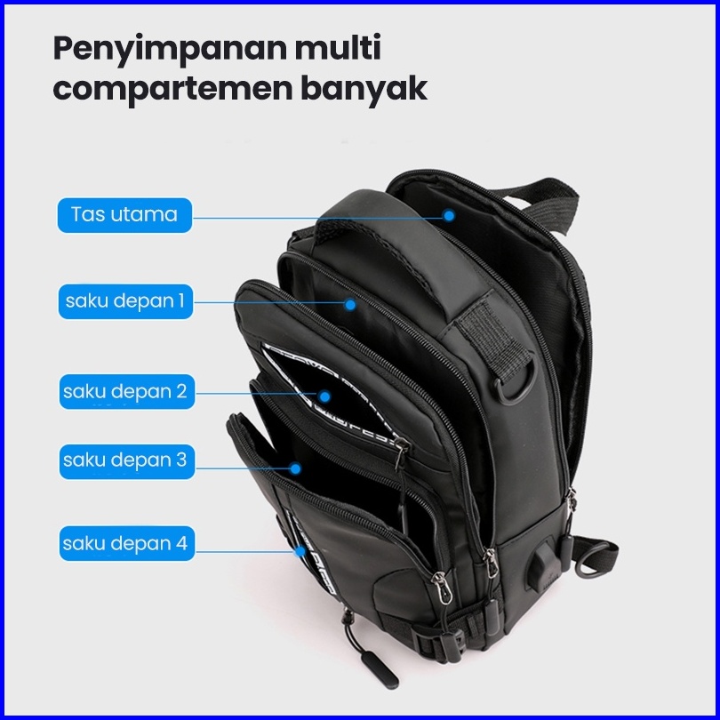 Freeknight Tas Selempang Pria Keren Multifungsi Sport Usb Charge Fashion Slempang Waterproof Ts713