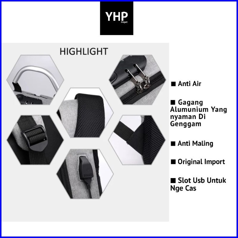 Tas Ransel Anti Maling Original Tahan Air Smart Bagpack Travel Bag Import Usb Slot Waterproof