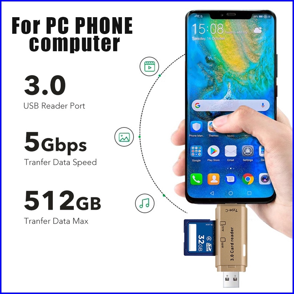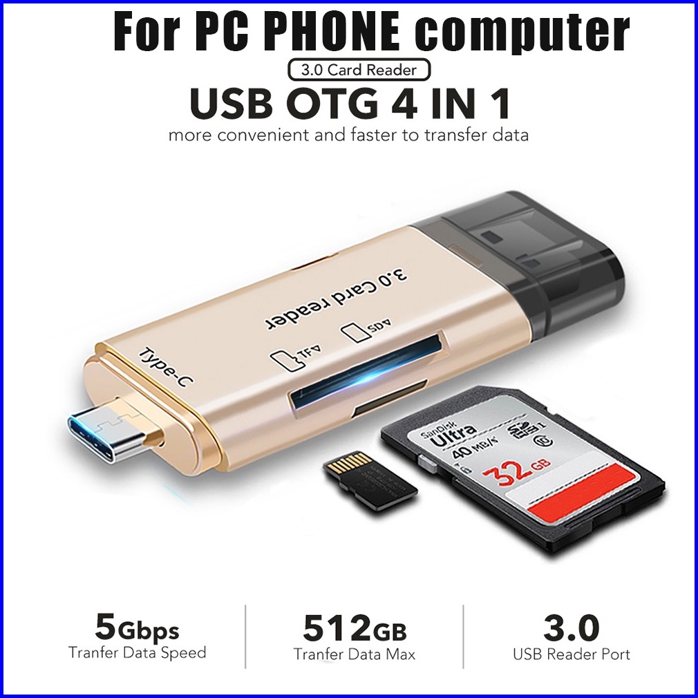 Actual 4 In 1 Card Reader High-speed Smart 3.0 Metal Type C Micro Usb Sd Card Tf Memory Card Read Otg Adapter