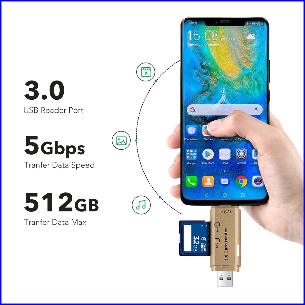 Amino 4 In 1 Usb 3.0 Type C Sd Card Tf Memory Card Read Otg Adapter