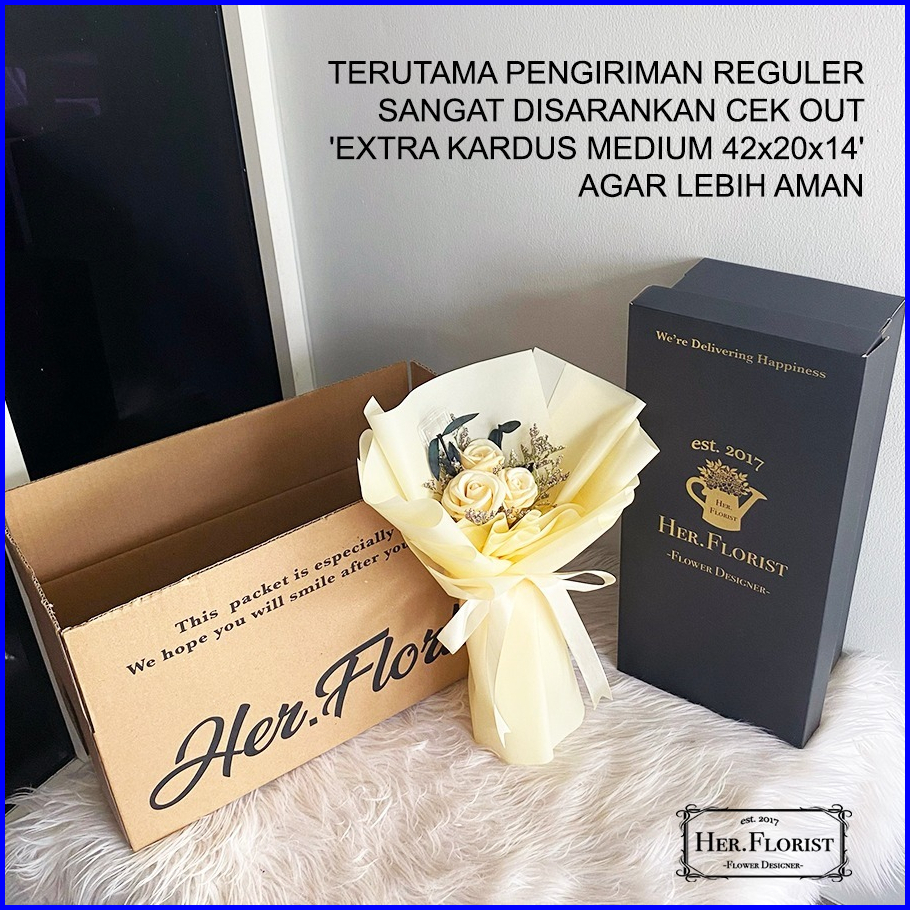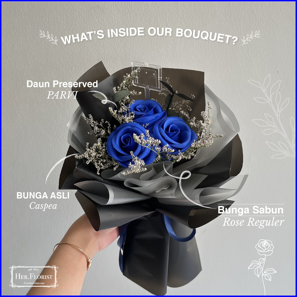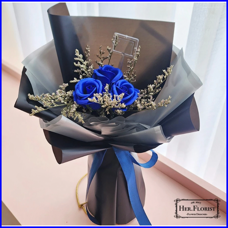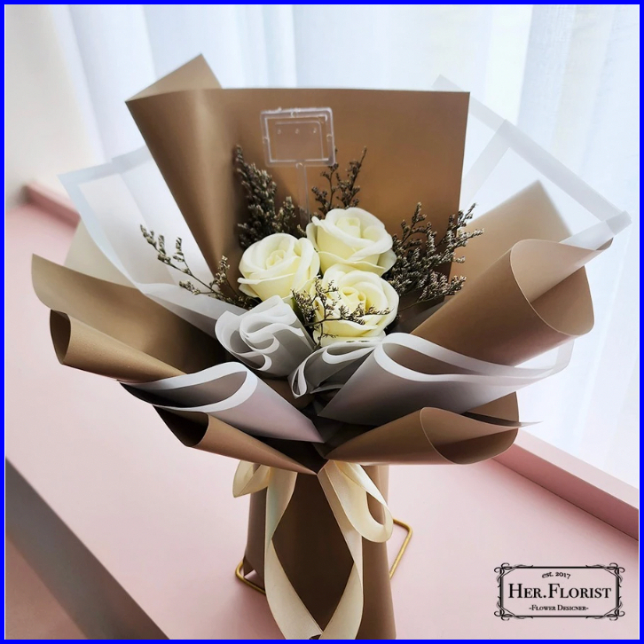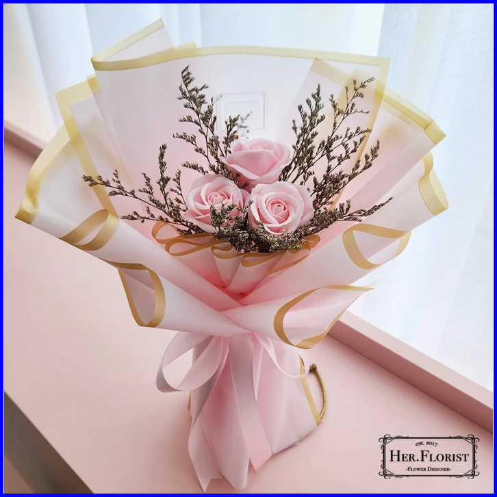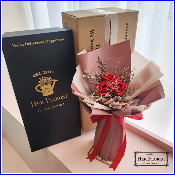 Her.florist Rose Triple Soap Dried Flowers Bouquet Buket Wisuda Anniversary Ulang Tahun Lamaran