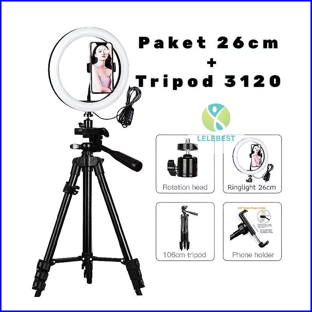 Ringlight 26cm Tripod 3120 Selfie Make Up Live Vlog Lampu Ring Light