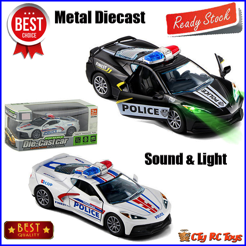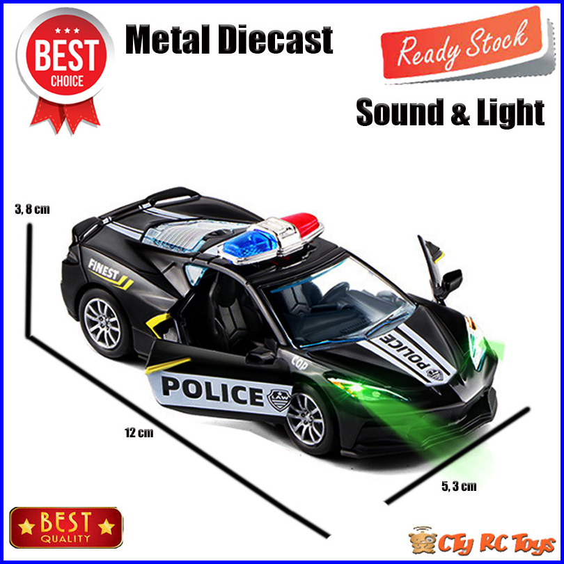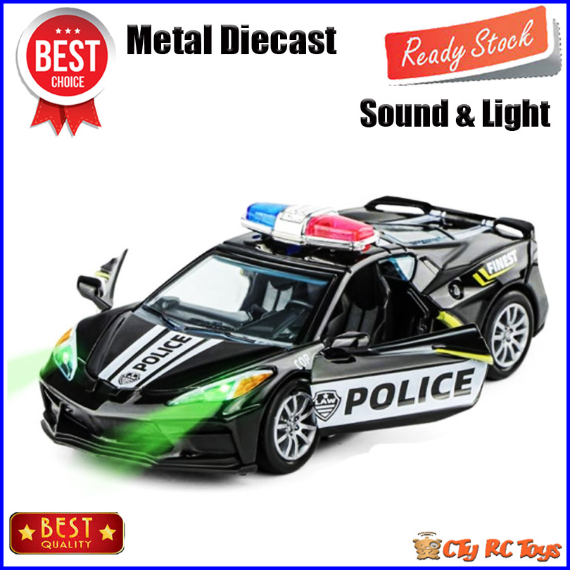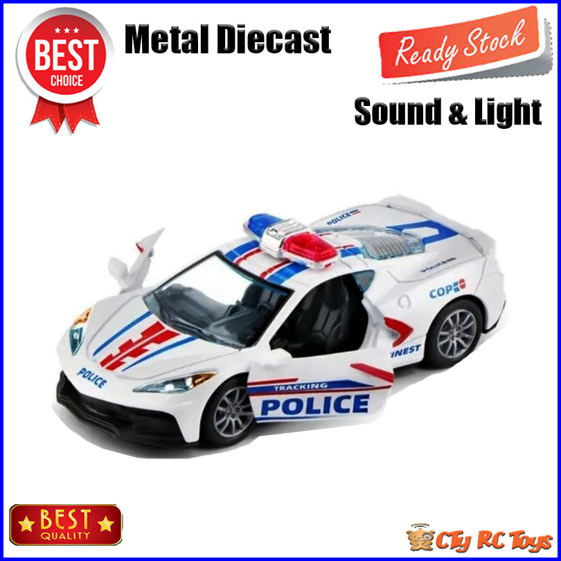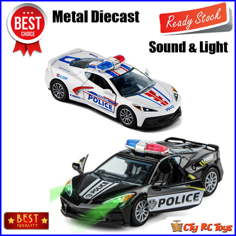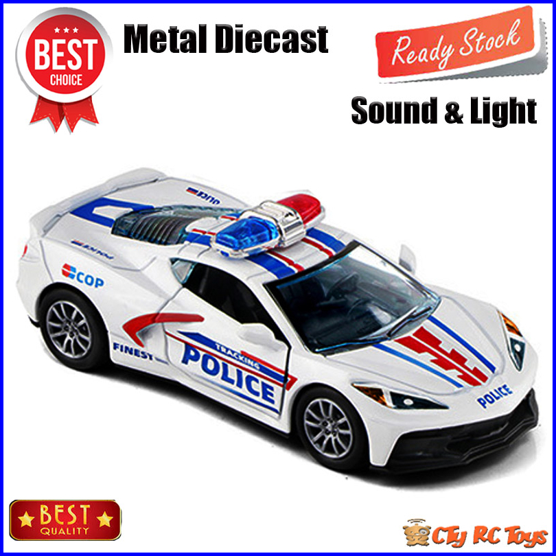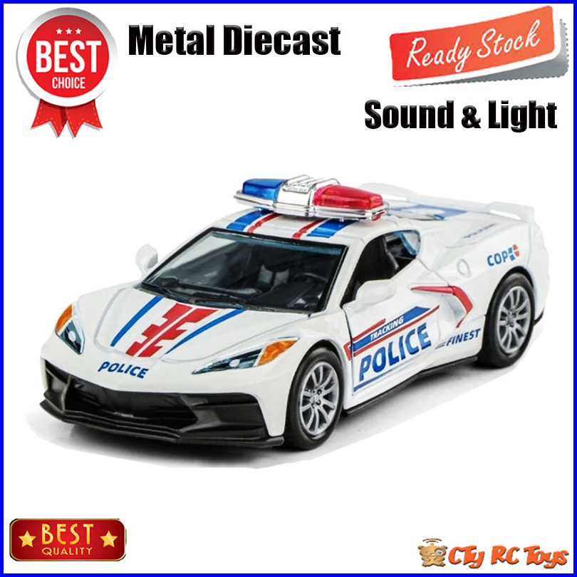 Diecast Miniatur Mainan Mobil Mobilan Corvette Police Bahan Metal Sound Light