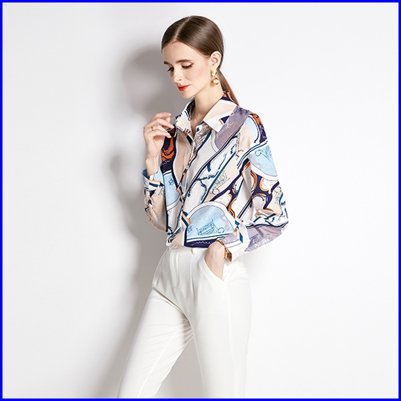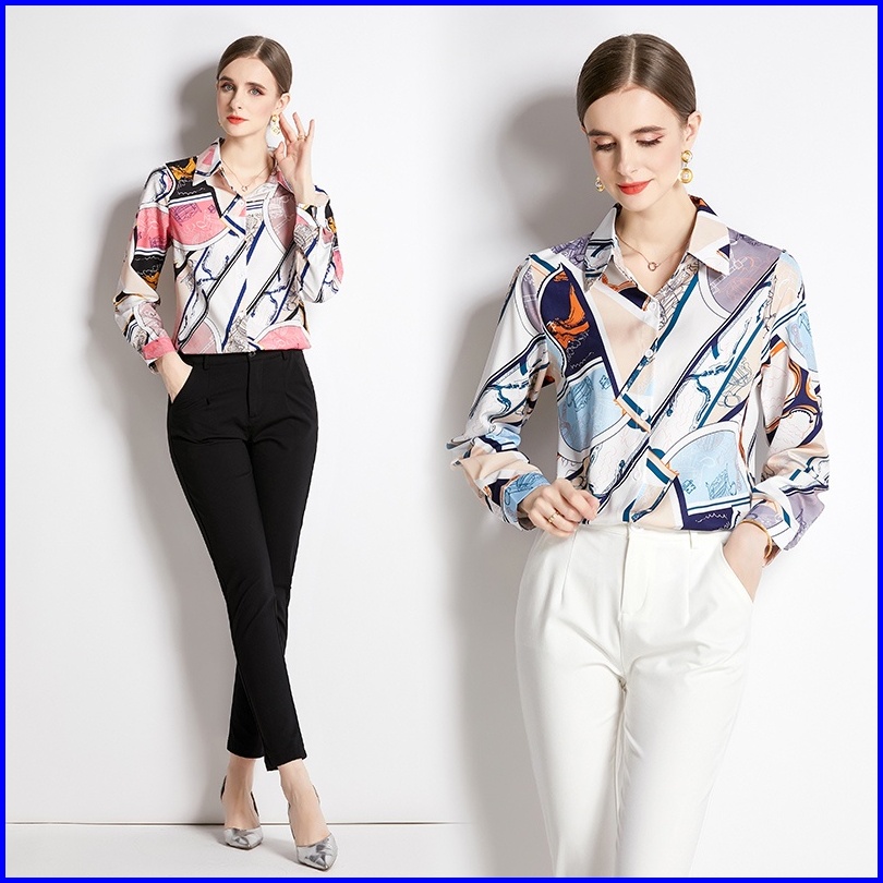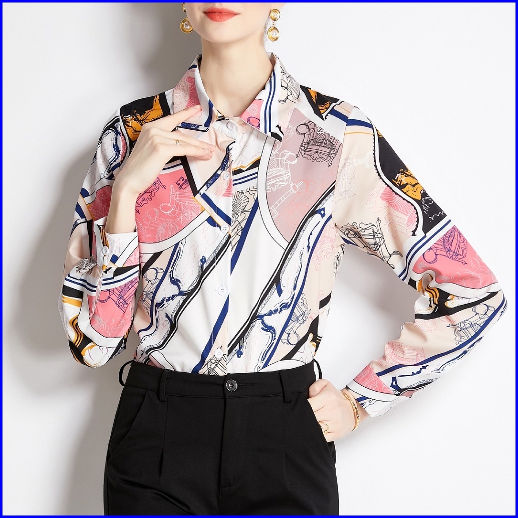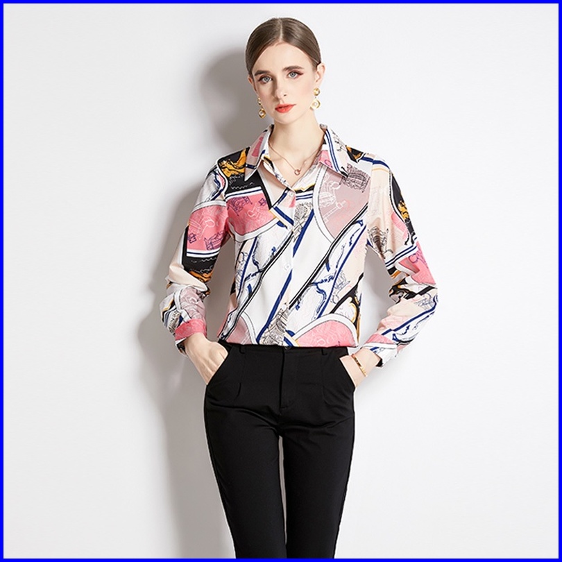 New Korean Fashion Pink Blue Chiffon Soft Fabric Long Sleeve Women Shirts Atasan Kemeja Pendek Wanita Kasual Lengan Panj