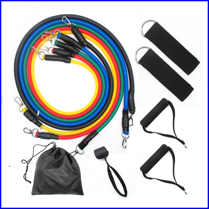 New Power Resistance Band 11 Pcs Set Tali Tarik Karet Gym Yoga Fitness Alat Olahraga Chest Shoulder