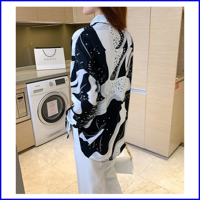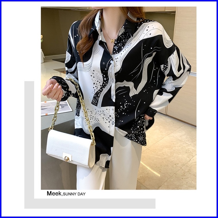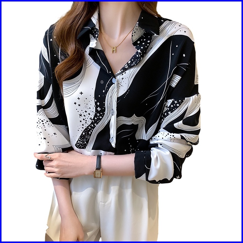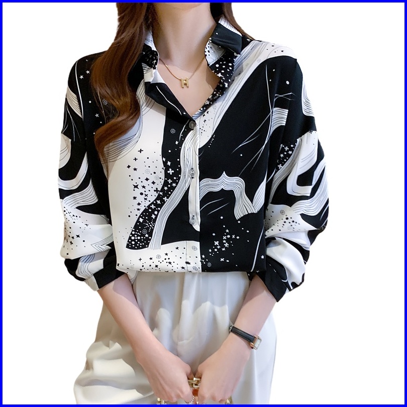 Kualitas Tinggi Garis-garis Hitam Putih Kemeja Wanita Lengan Panjang Fashion Atasan Kasual Jalanan Korea