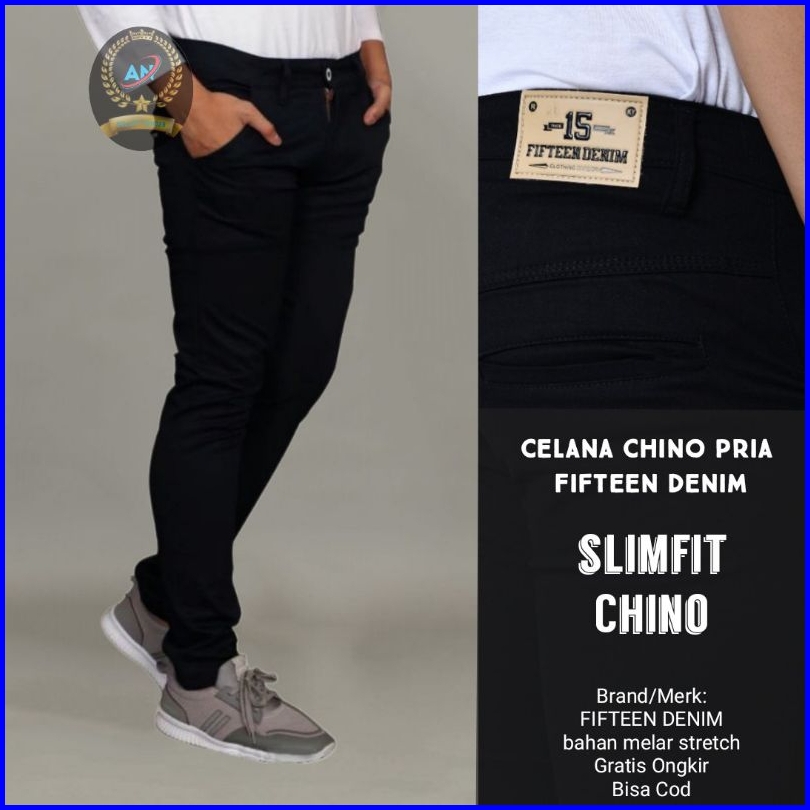Celana Chino - Celana Pria Chino Premium Panjang 100cm Black Slimfit
