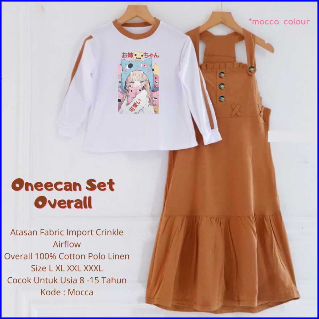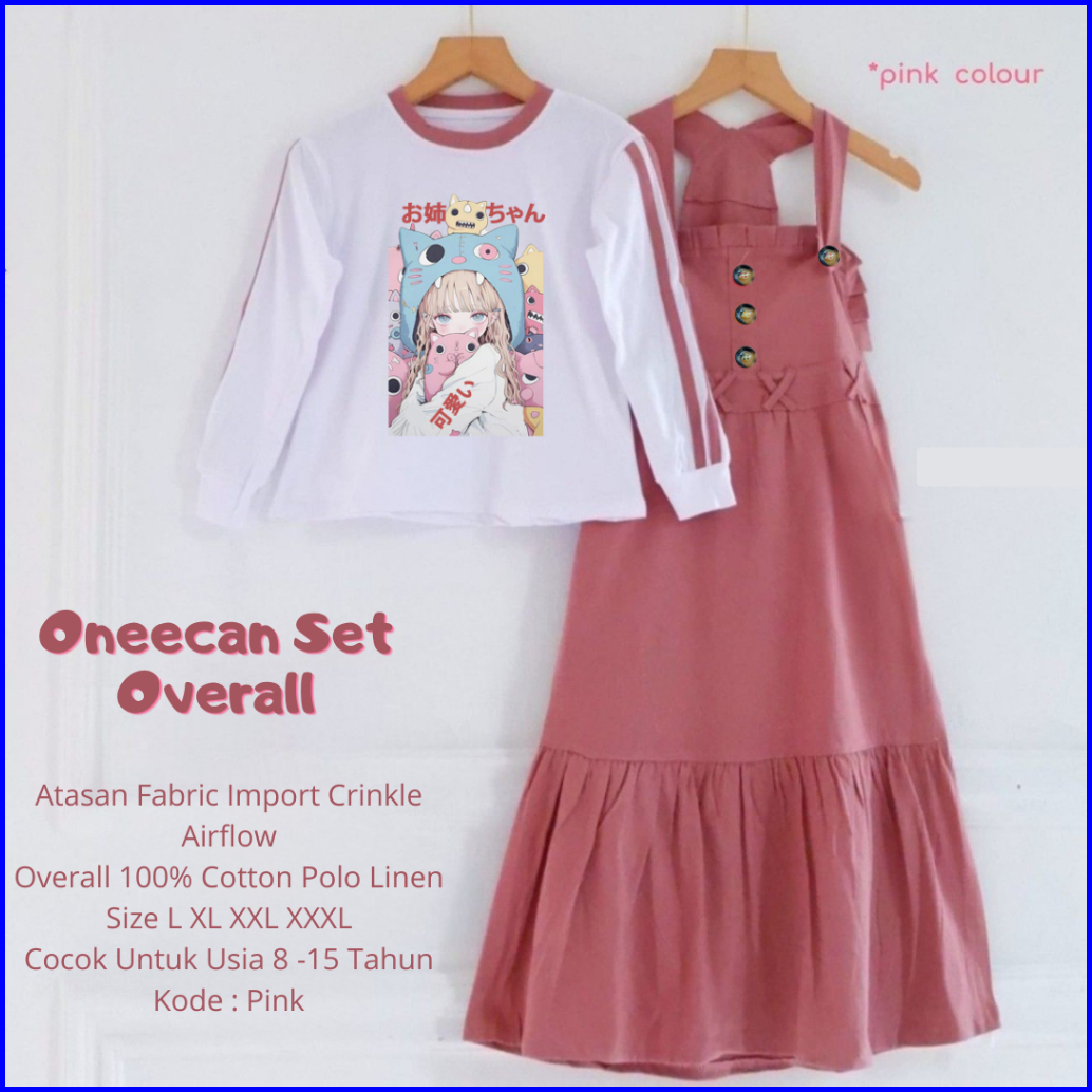 Oneechan Set Kids Setelan Baju Anak Crinkle Lengan Panjang Dan Overall Linen Oneset Anak Usia 8-15 Tahun Baju Anak Remaj