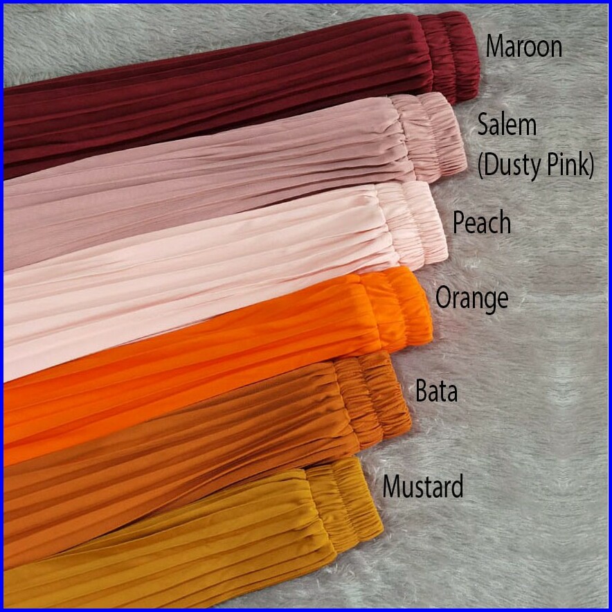 BLACK, NAVY, DARK BROWN, BROWN (MILO), MOCCA, CREAM, GREY, Hijau Tua, DASTY GREEN, MAROON, DARKGREY, DASTY BLUE, LEMON, MUSTRAD, MERAH BATA, SOFT PINK (PEACH), MANGGIS, PURPLE, COFFEE, EMERALD, MAGENTA, Sage, DARKARMY