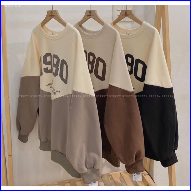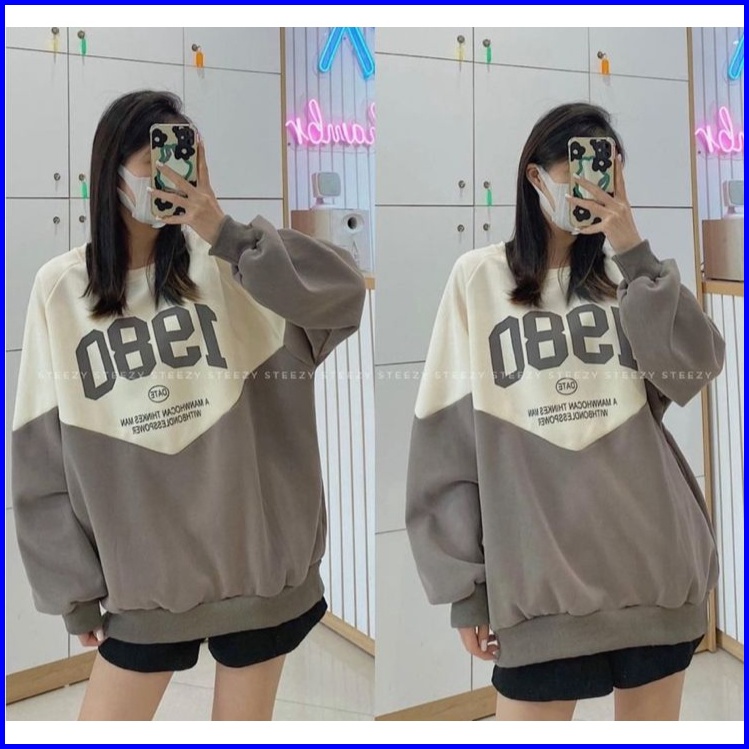1980 Date Combie Oversize Sweater Crewneck Wanita